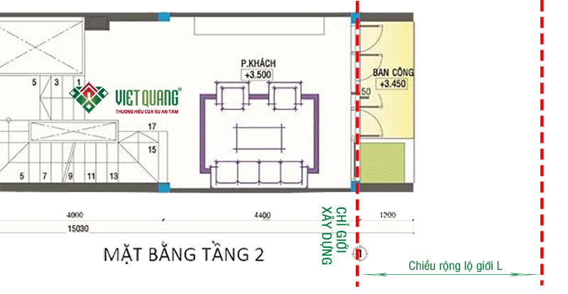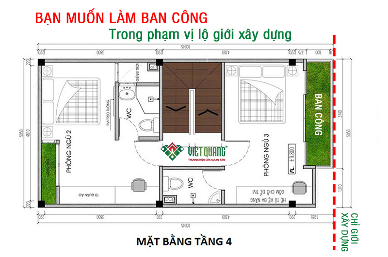 Bạn chỉ được phép xây dựng tường ngăn phòng trong phạm vị đường lộ giới xây dựng (chỉ giới xây dựng). Có nghĩa là, vị trí nằm ngoài lộ giới chỉ được phép làm ban công, không được xây dựng tường ngăn phòng để ở.