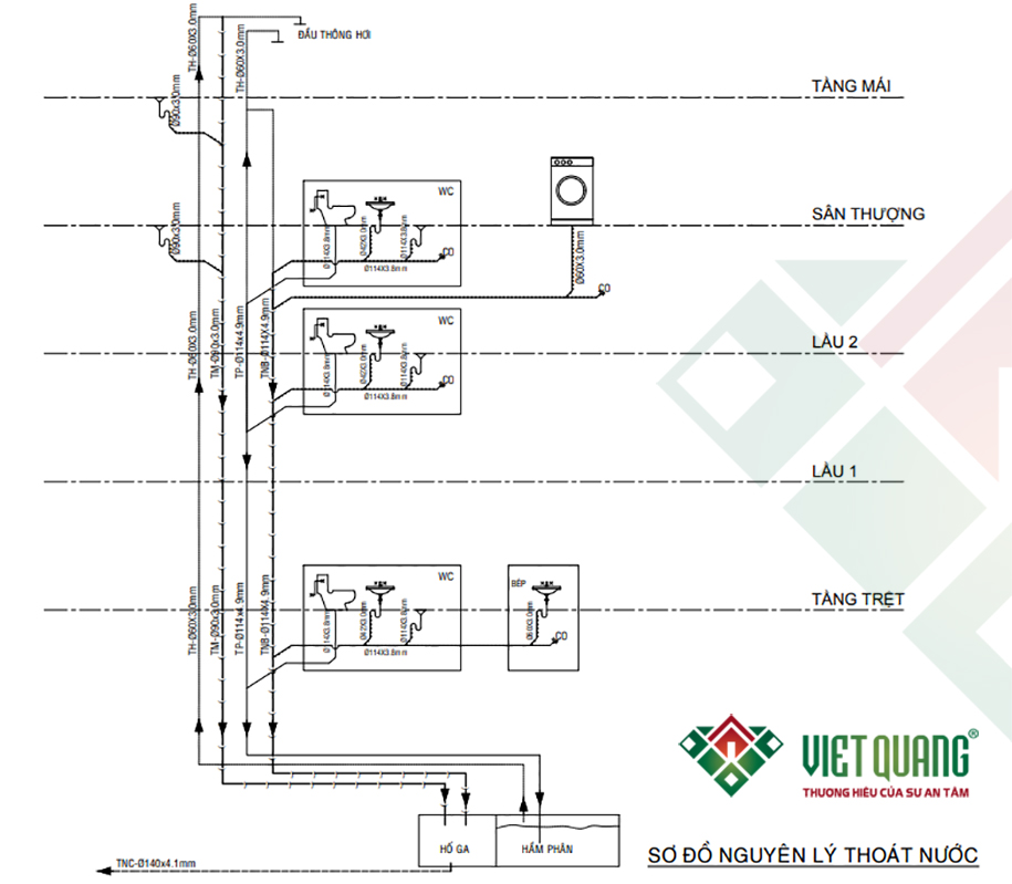 Sơ đồ nguyên lý lắp đặt hệ thống thoát nước cho nhà phố