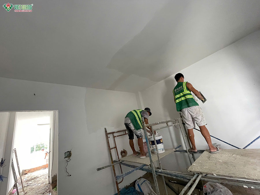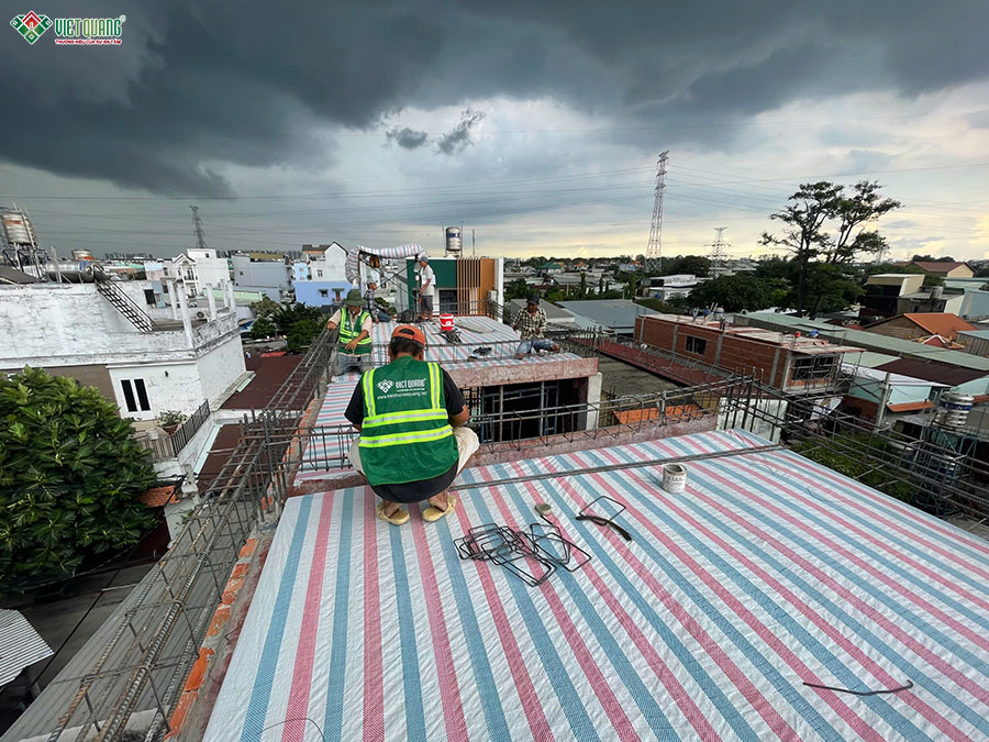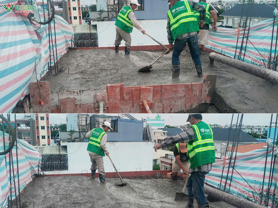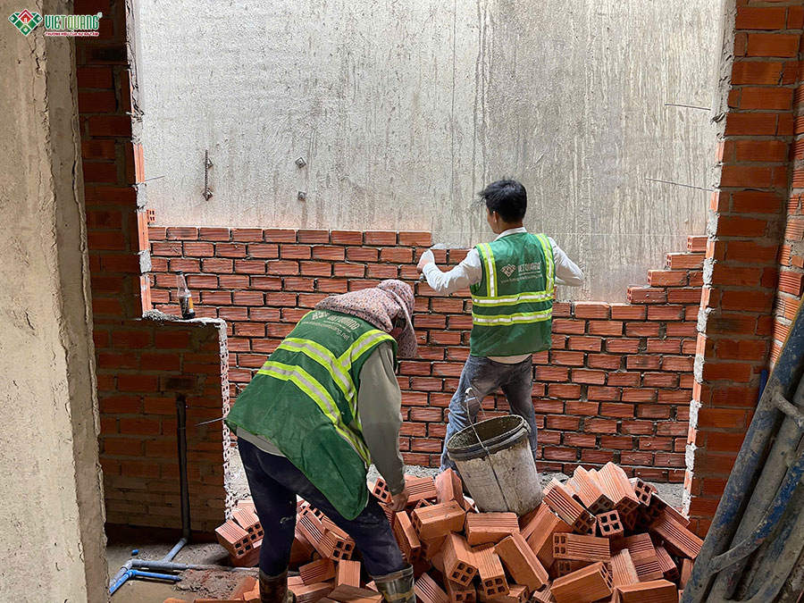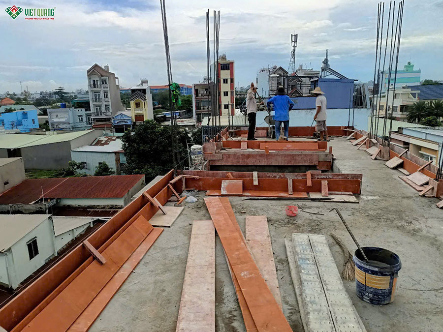 Các công việc bao gồm gia công lắp dựng cốp pha, thi công cốt thép, dựng khung xây nhà lần lượt từ tầng trệt lên đến tầng thượng. Đội ngũ thi công triển khai các hạng mục tuân thủ một số tiêu chí, chống nứt, chống thấm, chống hôi theo chuẩn xây dựng của Việt Quang Group để đảm bảo mang đến công trình chất lượng, thẩm mỹ cao, thoải mái trong quá trình sử dụng.