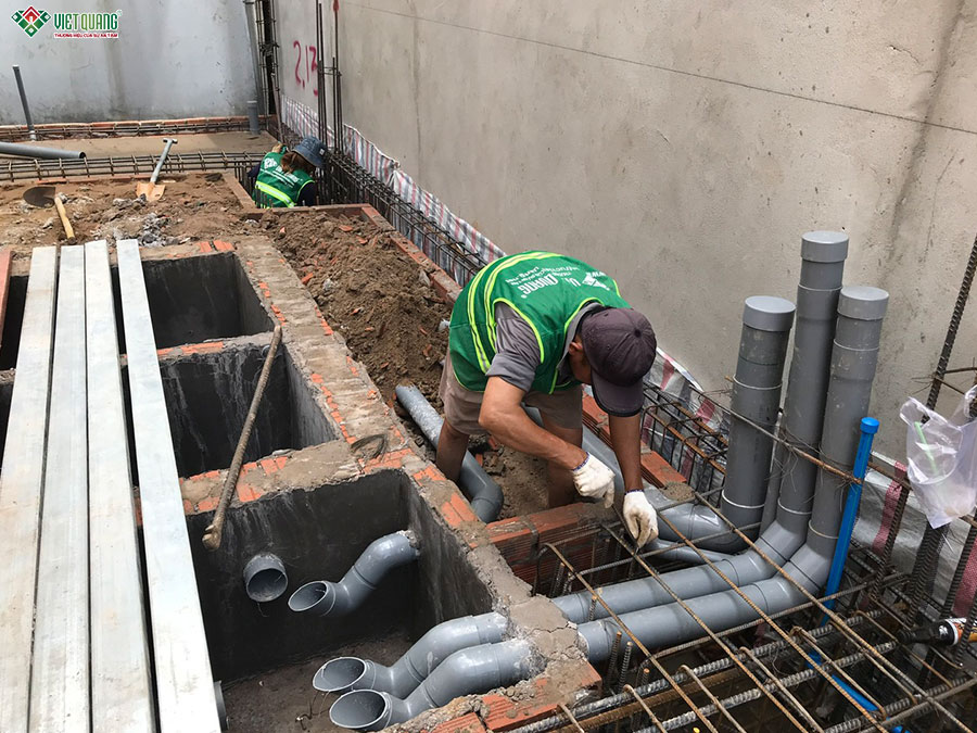 - Thi công hệ thống ống âm nước, âm điện, chừa các đầu chờ đúng vị trí nhằm tối ưu cho giai đoạn hoàn thiện sau này.