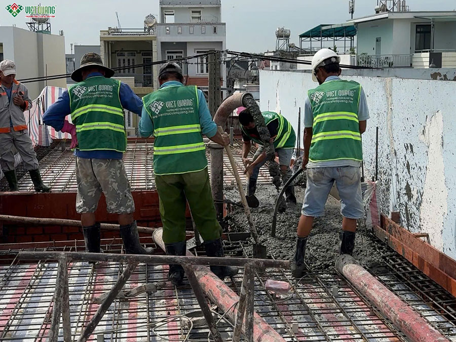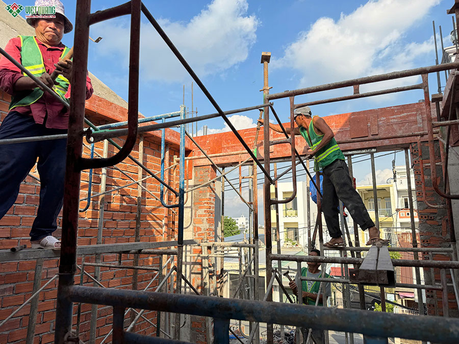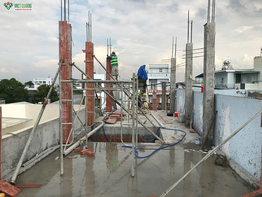Ngay sau khi hoàn thiện phần móng bộ phận chịu lực quan trọng nhất của công trình, đội ngũ Việt Quang Group bước vào giai đoạn đầu tiên trong quá trình tạo dựng “khung xương” của ngôi nhà – Thi công xây dựng phần thô tầng trệt.