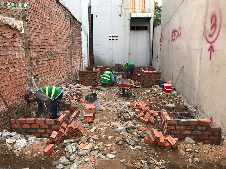 Giai đoạn thi công xây thô tầng trệt nhà 3 tầng sân thượng