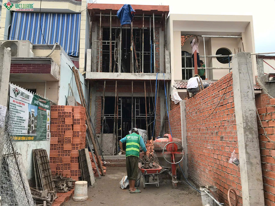 Công trình bước sang giai đoạn thi công xây thô lầu 1, lầu 2, đây là thời điểm hình dáng ngôi nhà 3 tầng sân thượng dần được định hình rõ nét.