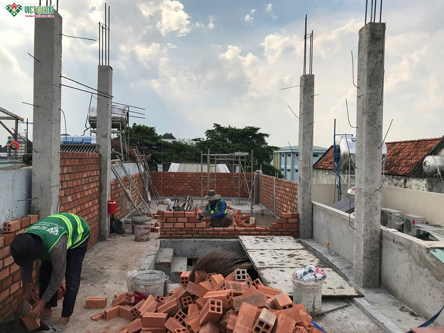 - Xây tường bao, tường phòng, giếng trời, tối ưu ánh sáng và sự thông thoáng.
