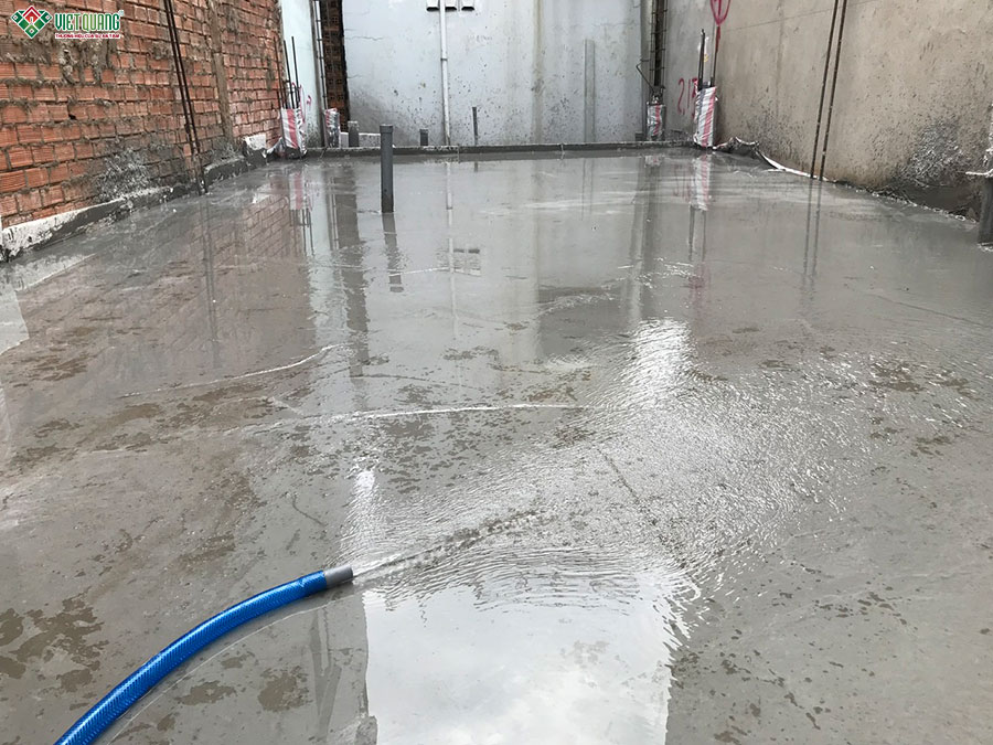 - Đổ bê tông sàn tầng trệt bằng bê tông thương phẩm để đảm bảo độ đặc, độ nén và tuổi thọ công trình.