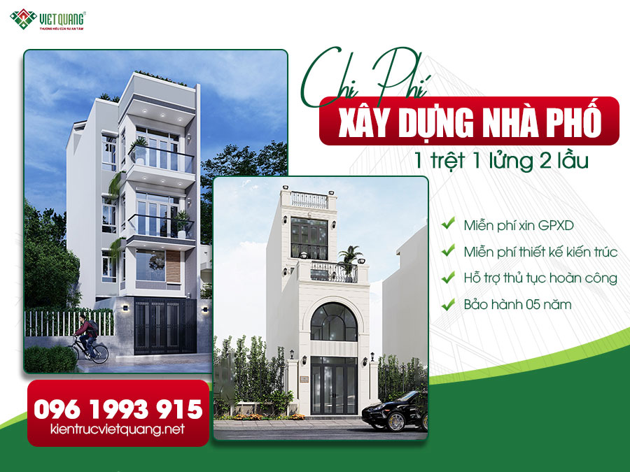 Lưu ý: Đối với công trình nhà phố diện tích <80m2 hoặc trong hẻm nhỏ đơn giá xây nhà có thể thay đổi nhẹ do điều kiện vận chuyển vật tư và định mức nhân công. Để được khảo sát, báo giá xây dựng chính xác, miễn phí quý khách hãy liên hệ Việt Quang Group hotline: 096 1993 915.
