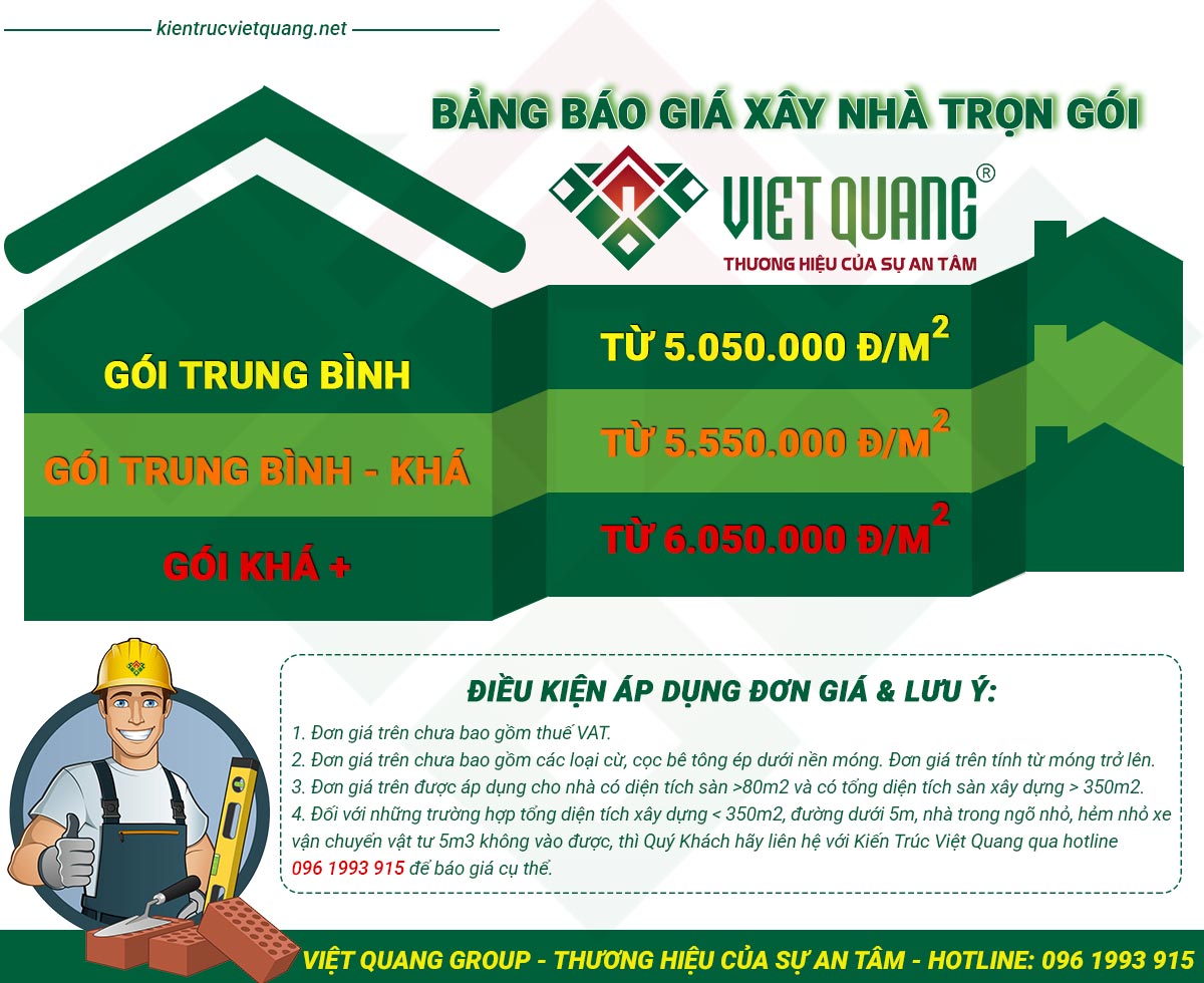 Để giúp Quý khách hàng nắm được thông tin tổng quan về đơn giá xây dựng nhà tại TPHCM hiện nay. Đồng thời có kế hoạch tài chính phù hợp sẵn sàng cho hành trình xây nhà, Việt Quang Group xin đưa ra mức giá xây nhà trọn gói năm 2026 cụ thể như sau: