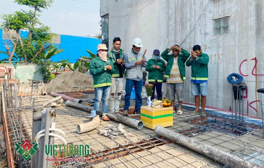 Vào ngày 12/01/2022, Việt Quang Group cùng gia đình chị Ngọc làm lễ khởi công xây dựng nhà phố 4 tầng 4.2x16m tại Bình Dương. Chị Ngọc là Khách Hàng cũ của Việt Quang, đầu năm 2021 Việt Quang đã thiết kế và xây dựng một ngôi nhà phố 4 tầng cho gia đình chị Ngọc tại quận 9 (nay thuộc TP. Thủ Đức). Do sự uy tín, chất lượng công trình tốt, đội ngũ nhân sự tuyệt vời nên chị Ngọc đã hợp tác với Việt Quang lần 2.