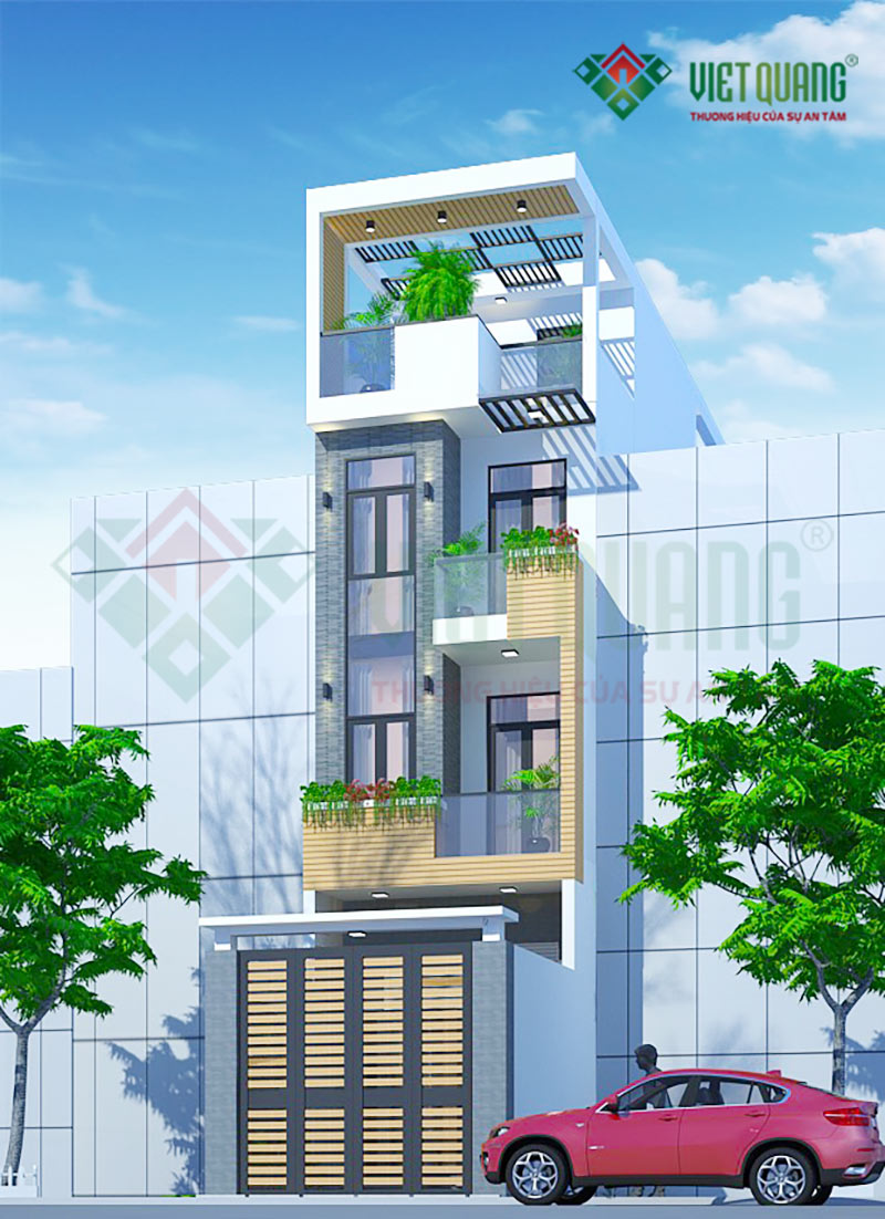 - Quy mô công trình: Nhà phố 4 tầng (1 trệt + 2 lầu + tum thang & sân thượng trước, sau)