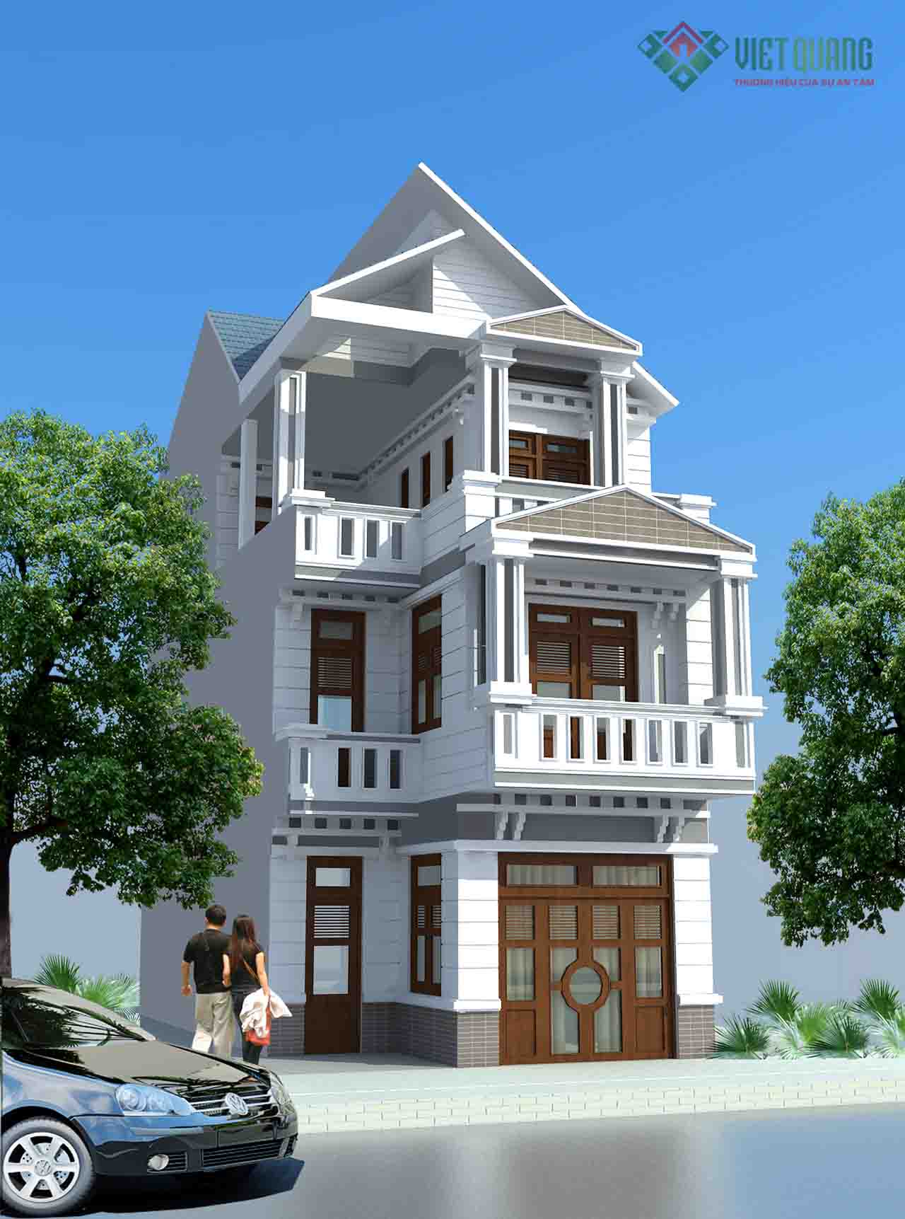 Quý khách đang cần tìm mẫu thiết kế nhà phố 4 tầng mái thái hãy tham khảo mẫu nhà dưới đây nhé. Việt Quang sẽ giới thiệu đến quý khách mẫu nhà phố 3 tầng đẹp, hiện đại – 19.