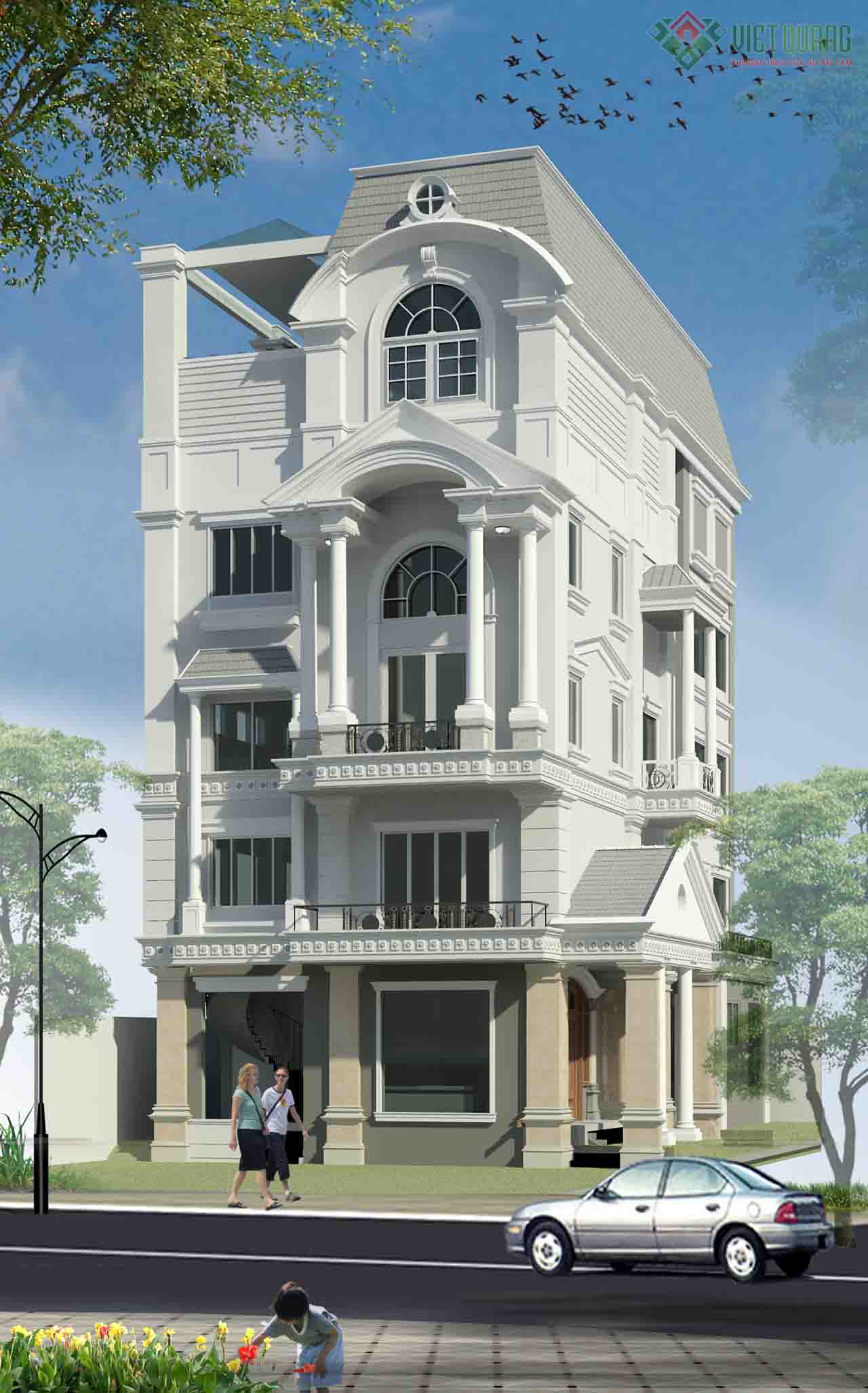 Việt Quang giới thiệu mẫu nhà phố 5 tầng hiện đại – 56. Đây là mẫu thiết kế nhà phố 5 tầng theo phong cách cổ điển diện tích 7.2x16m