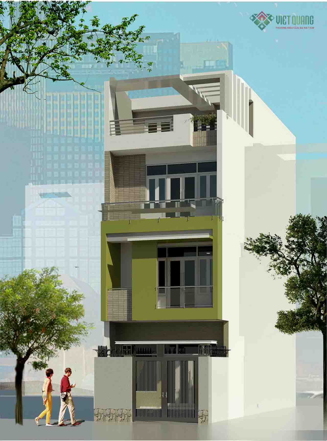Quý khách đang cần tìm mẫu thiết kế mặt tiền nhà 4 tầng diện tích 5x12m hãy tham khảo mẫu nhà dưới đây nhé. Việt Quang sẽ giới thiệu đến quý khách mẫu nhà phố 4 tầng đẹp, hiện đại – 07.