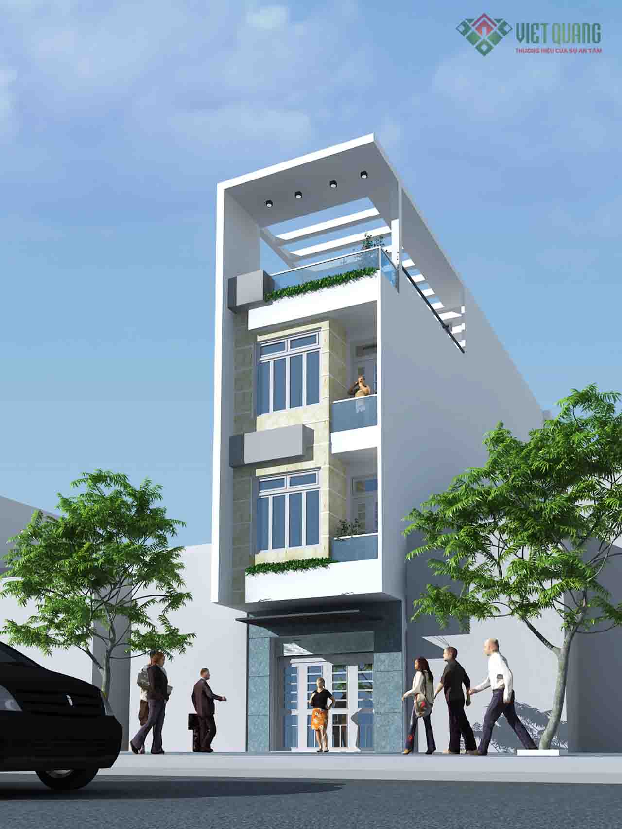 Việt Quang giới thiệu đến quý khách mẫu nhà phố 4 tầng đẹp, hiện đại – 21. Đây là mẫu nhà phố 1 trệt 2 lầu 1 tum thang có sân thượng phía trước. Phong cách thiết kế hiện đại, đơn giản