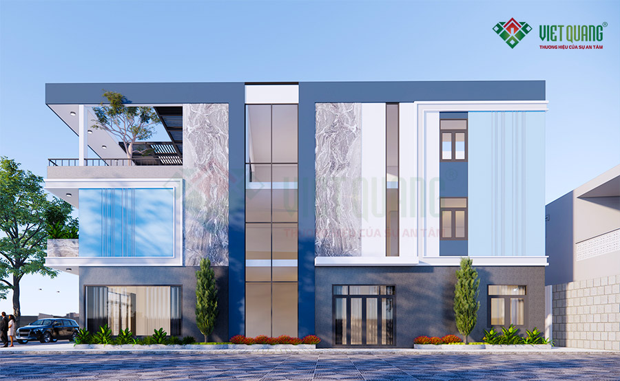 Phối cảnh mặt tiền nhà phố 3 tầng hai mặt tiền diện tích 7x20m