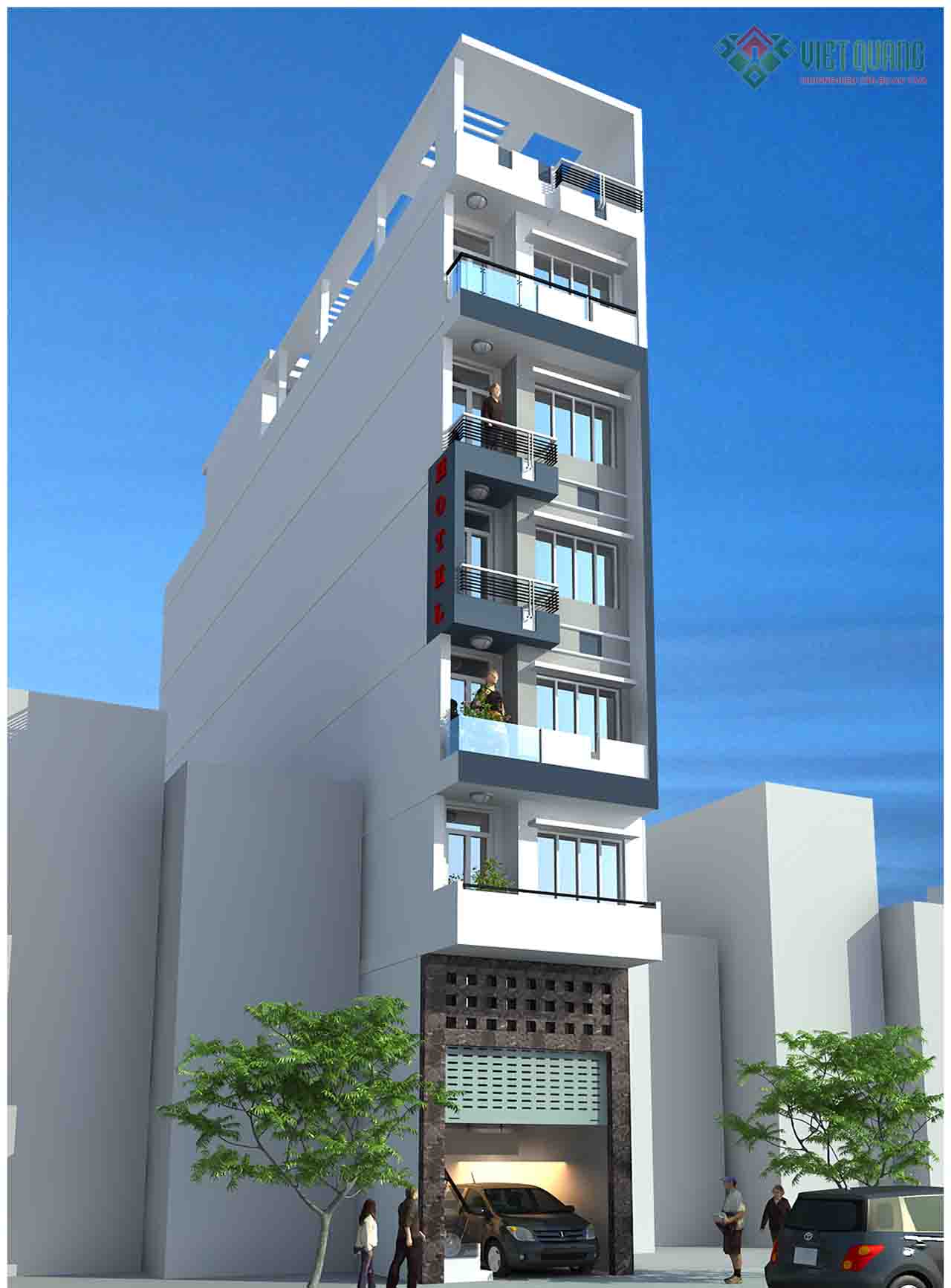 Việt Quang xin giới thiệu đến quý khách mẫu thiết kế nhà phố 7 tầng đẹp – 07. Đây là mẫu thiết kế khách sạn 7 tầng diện tích 5x25m.