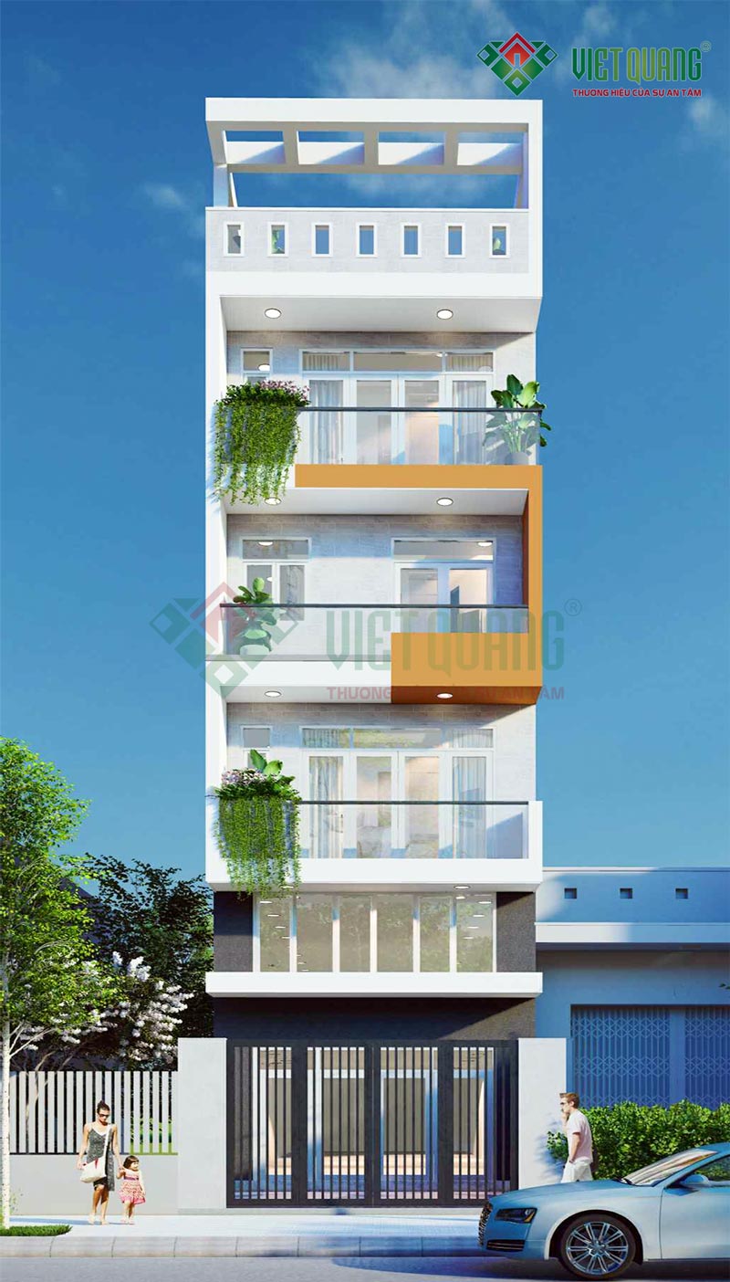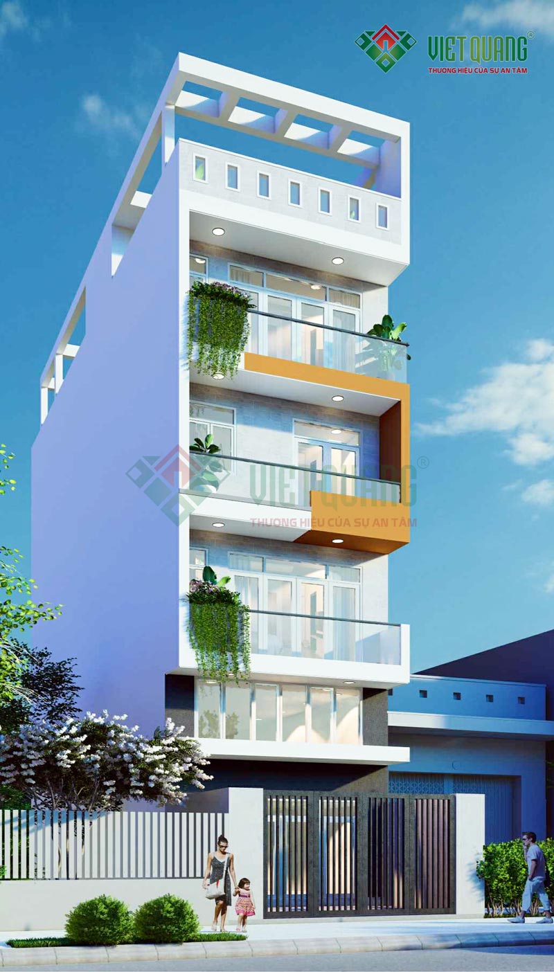 Quý khách đang tìm mẫu thiết kế phối cảnh nhà phố 6 tầng đẹp hiện đại? với diện tích khoảng 100m2/sàn? Mời quý khách hãy xem mẫu thiết kế dưới đây. Việt Quang Group giới thiệu đến quý khách mẫu thiết kế nhà phố 6 tầng đẹp – 01 có diện tích mặt tiền 5m, lở hậu 6m chiều dài ngôi nhà 20m, diện tích xây dựng m2/ sàn là 100m2, tổng diện tích xây dựng là 550m2.