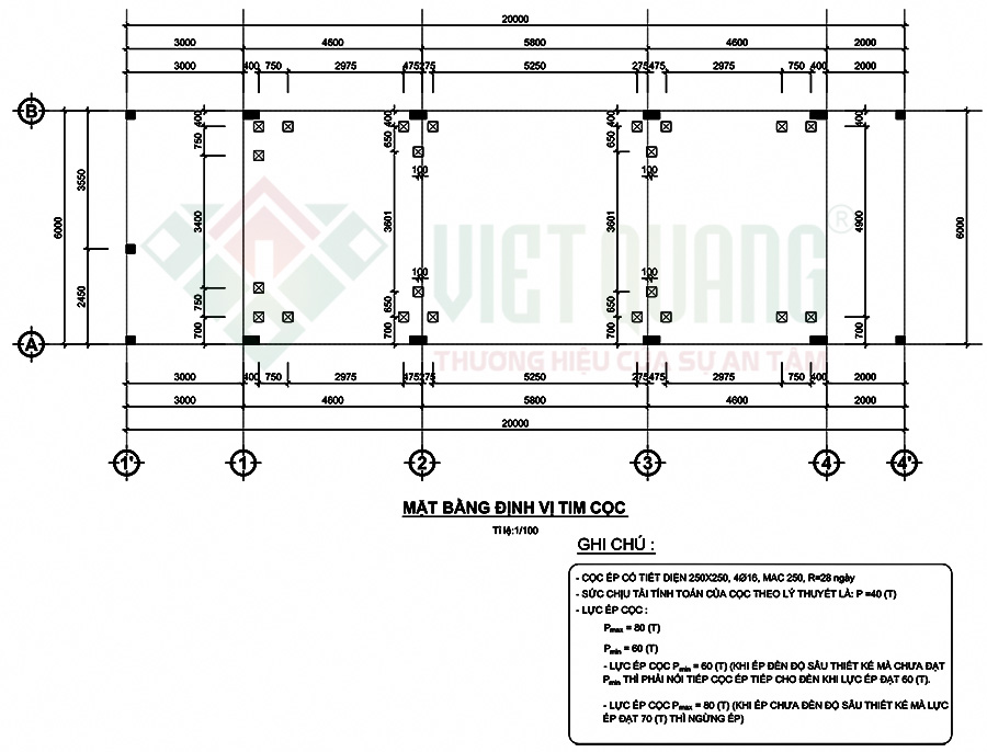 - Khi ép chú ý hạn chế tối đa ép kiểu consol, để các vị trí ép cọc được ép lực lớn nhất Pmax= 80 tấn