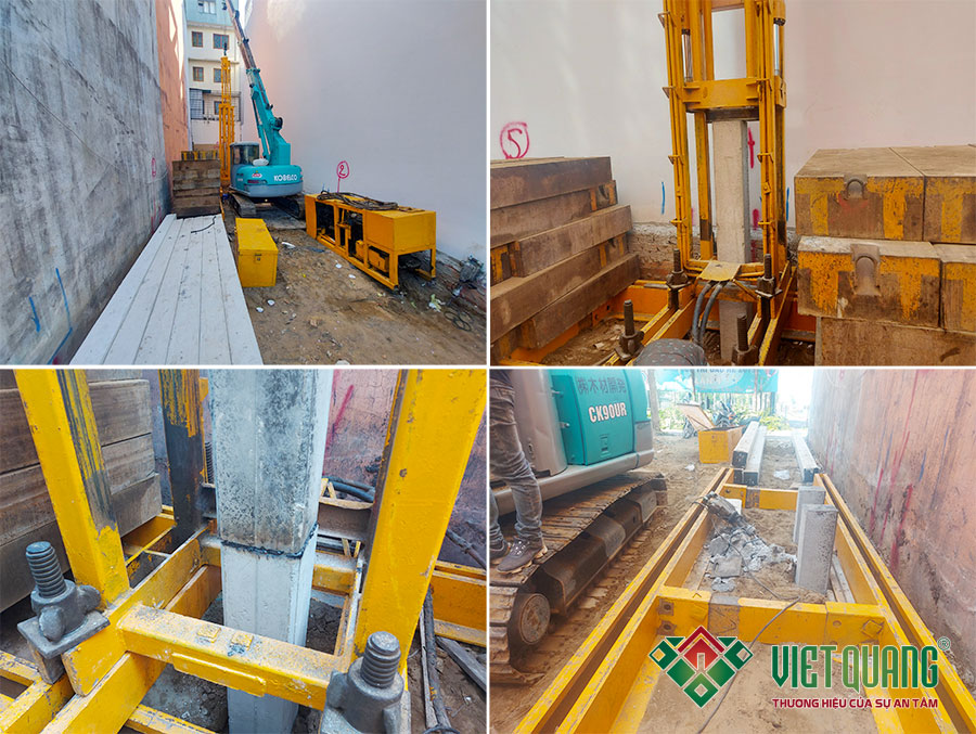 - Khi ép đoạn tiếp theo của mỗi vị trí cọc, phải chú ý bỏ chốt nối giữa hai cọc và hàn cẩn thận.