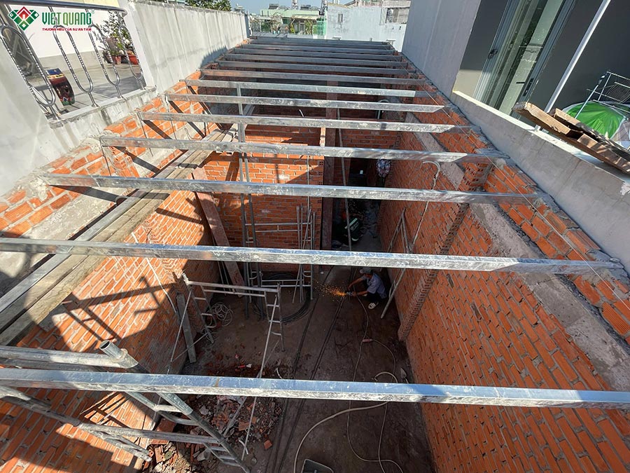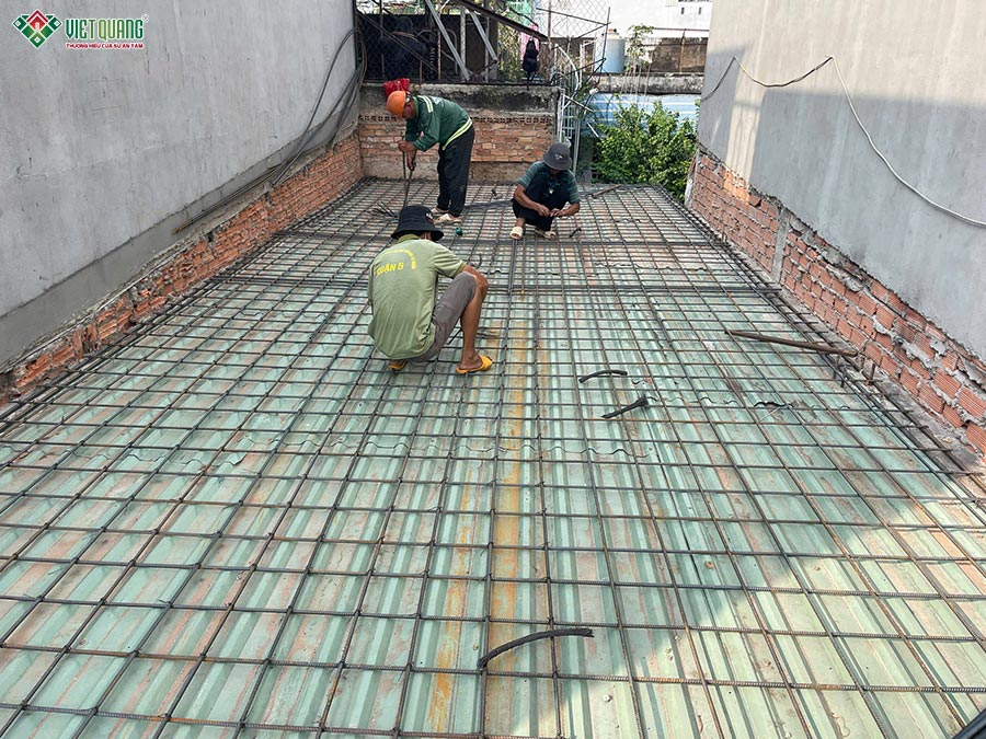 - Thi công hệ dầm, sàn bê tông cốt thép cho tầng lầu mới