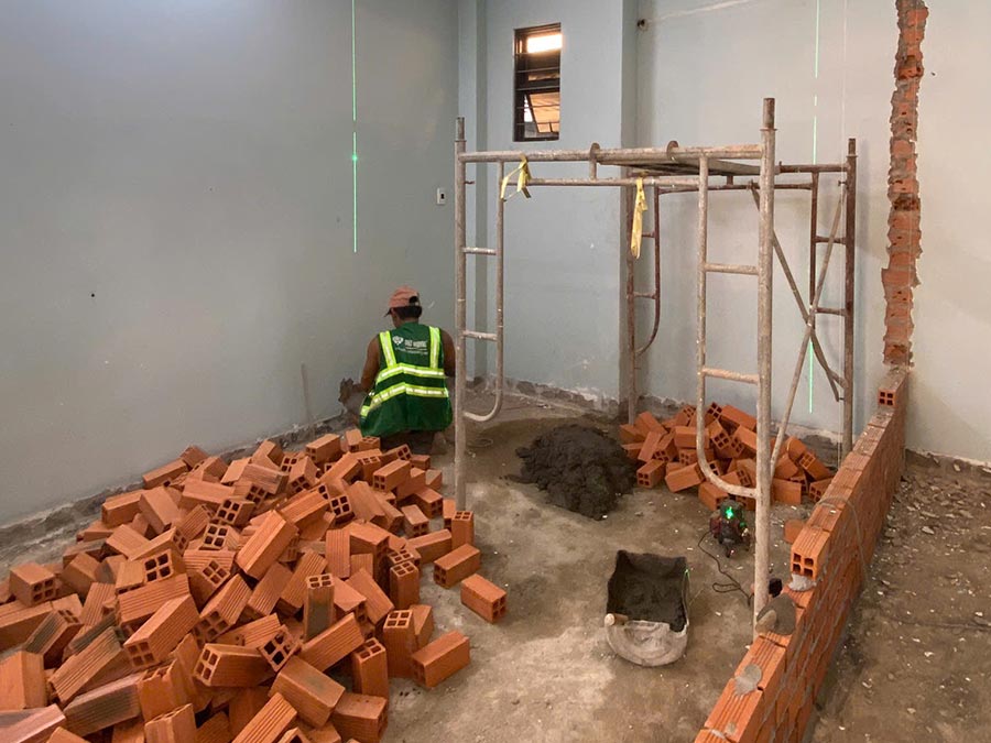 - Xây tường bao, tường ngăn phòng theo bản vẽ thiết kế công năng