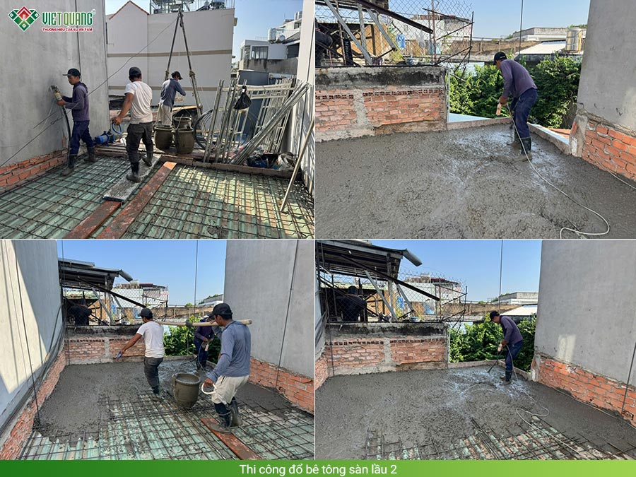 Toàn bộ quá trình thi công nâng tầng lầu 2 được giám sát chặt chẽ bởi kỹ sư phụ trách công trình, đảm bảo tuân thủ nghiêm ngặt các tiêu chuẩn kỹ thuật xây dựng và an toàn lao động. Nhờ quy trình thi công bài bản và kinh nghiệm thực tế dày dặn, Việt Quang Group đã kiểm soát tốt tiến độ, hạn chế tối đa rung chấn và ảnh hưởng đến các công trình liền kề.