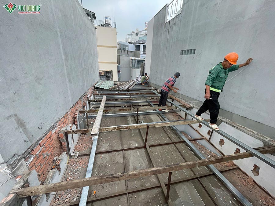 Sửa nhà nâng tầng là một hạng mục khó trong sửa chữa nhà, đòi hỏi đơn vị thi công phải có đủ năng lực, tính toán chính xác hiện trạng kết cấu, khả năng chịu lực của móng cột dầm. Đồng thời đưa ra giải pháp gia cố phù hợp để đảm bảo an toàn lâu dài cho công trình. Hiểu rõ những yêu cầu kỹ thuật khắt khe đó, Việt Quang Group đã trực tiếp khảo sát hiện trạng, tư vấn phương án sửa chữa tối ưu và lập kế hoạch thi công chi tiết cho từng giai đoạn.