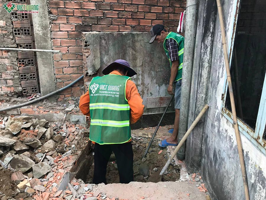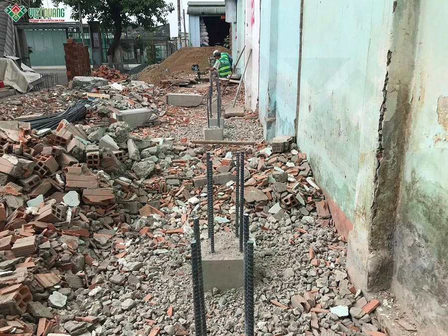 Sau khi thống nhất phương án thiết kế và ký hợp đồng xây dựng nhà trọn gói. Công trình nhà ở của gia đình anh Dũng được Việt Quang Group triển khai thi công xây dựng theo quy trình chuẩn.