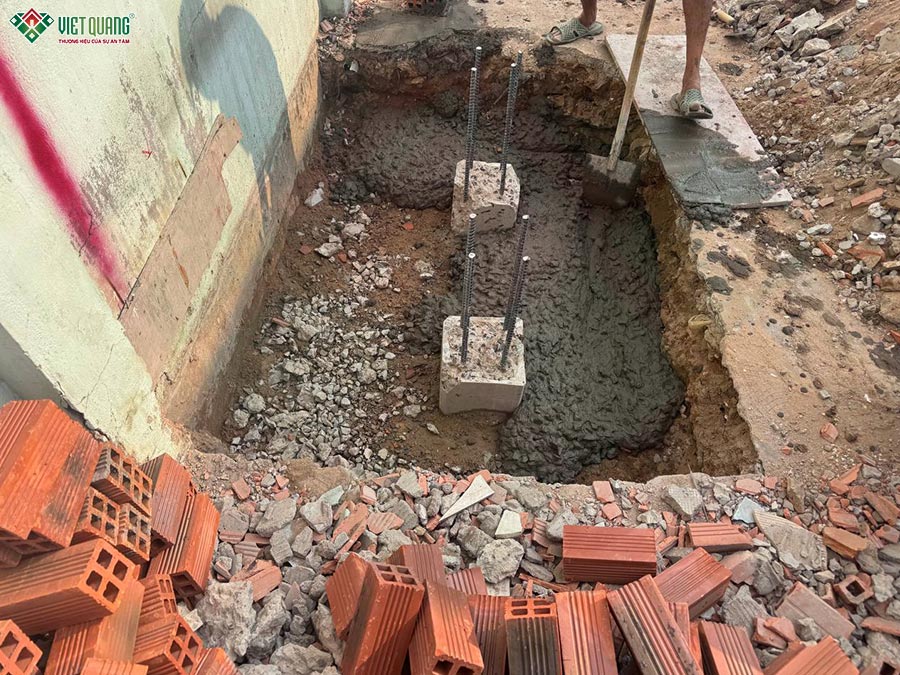 Trong suốt quá trình thi công, Việt Quang Group luôn kiểm soát nghiêm ngặt chất lượng vật tư đầu vào như thép, xi măng, cát đá, đồng thời bố trí kỹ sư giám sát trực tiếp tại công trình. Nhờ đó, phần móng được hoàn thiện đúng kỹ thuật, tạo nền tảng vững chắc cho toàn bộ công trình phía trên.