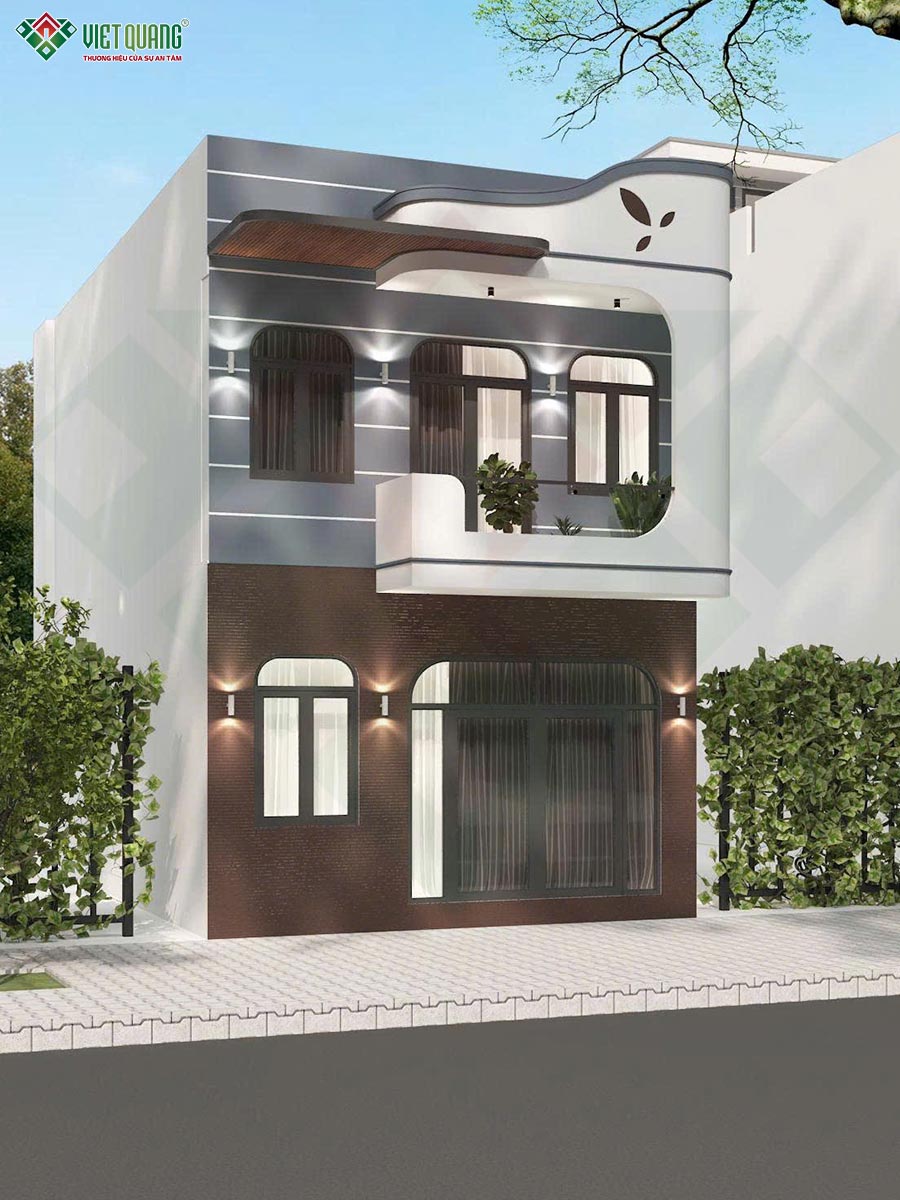 Ngôi nhà được lựa chọn phong cách hiện đại với các đường nét gọn gàng, hạn chế chi tiết rườm rà nhằm tối ưu chi phí nhưng vẫn đảm bảo tính thẩm mỹ. Mặt tiền được xử lý bằng các mảng khối vuông vức kết hợp cùng hệ cửa kính, ban công và lam trang trí tạo điểm nhấn nổi bật. Gam màu chủ đạo là trắng – xám kết hợp vật liệu hoàn thiện hiện đại, mang đến cảm giác trẻ trung, sang trọng và không bị lỗi thời theo thời gian.