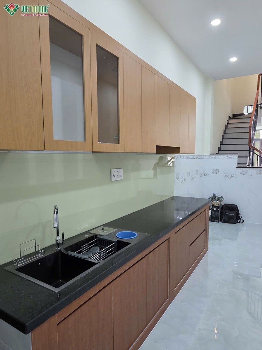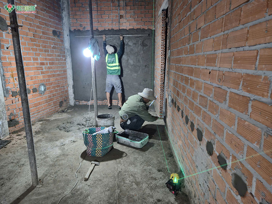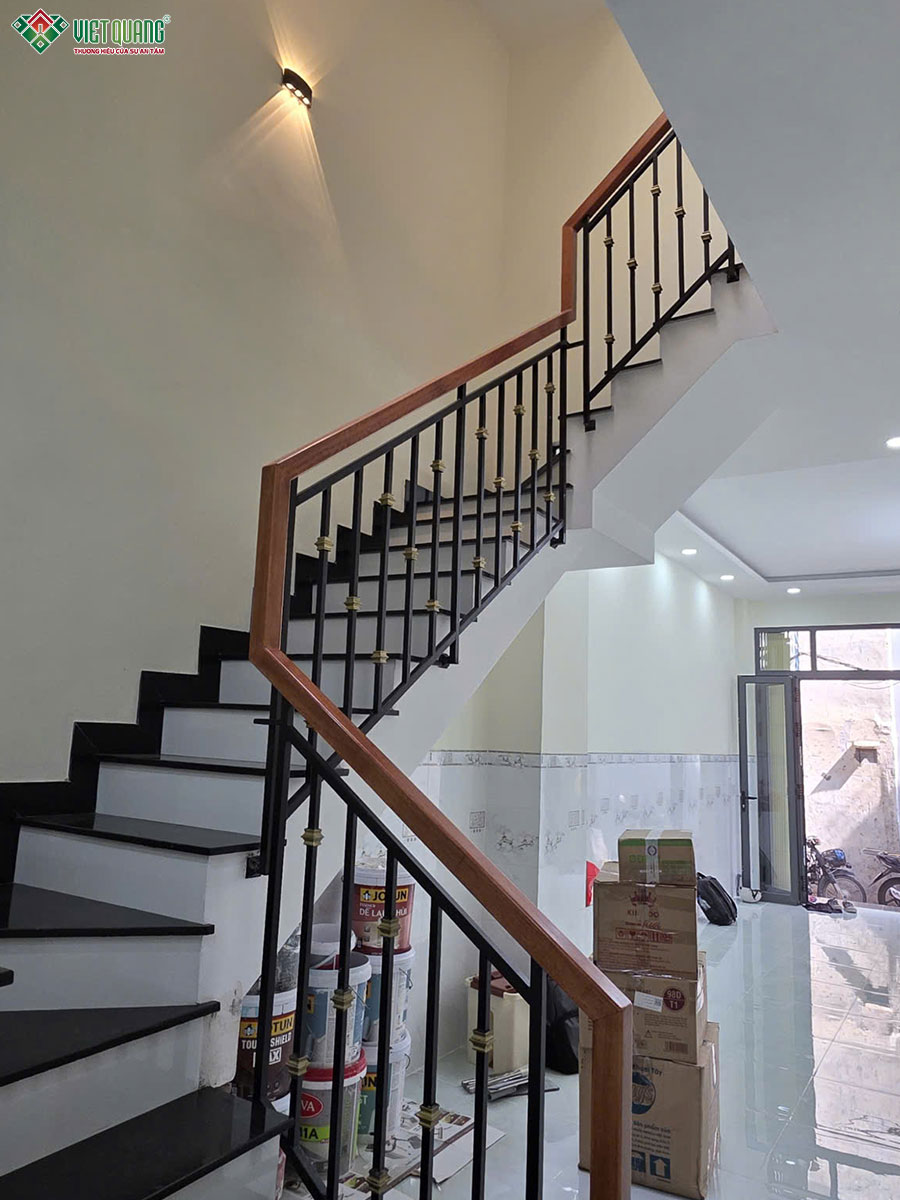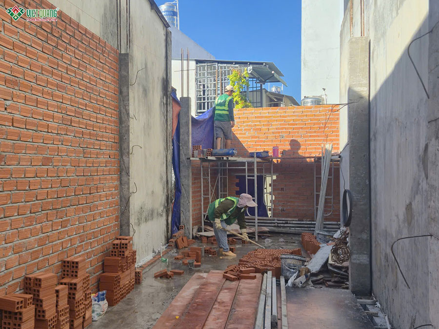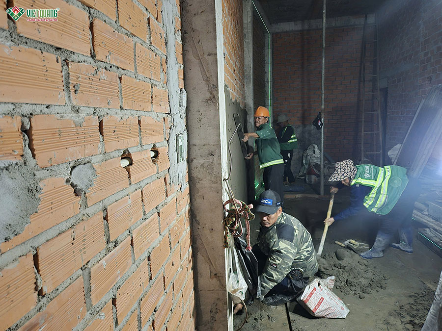 Sau khi phần thô được hoàn tất, đội ngũ Việt Quang Group bắt đầu triển khai các hạng mục hoàn thiện nhà ở từ trong ra ngoài theo quy trình khoa học và tiêu chuẩn kỹ thuật cao. Giai đoạn thi công hoàn thiện là bước “thổi hồn” vào công trình, giúp ngôi nhà 3 tầng sân thượng khoác lên diện mạo hoàn chỉnh, chỉn chu và đúng với bản thiết kế ban đầu.