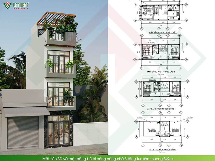 Từ kinh nghiệm thực tế, đội ngũ kỹ sư Việt Quang Group xác định giải pháp không nằm ở việc “xây nhiều”, mà là tối ưu từng mét vuông sử dụng. Phương án xây nhà 3 tầng tum sân thượng với dịch vụ xây nhà trọn gói đội ngũ chuyên gia xây dựng Việt Quang Group thể hiện rõ cách tối ưu không gian sống trên diện tích 3x9m mà vẫn đảm bảo đầy đủ tiện nghi và thẩm mỹ cho gia đình anh Tiến.