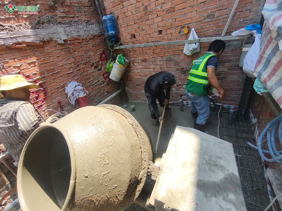Hình ảnh thi công đổ bê tông cột tầng trệt