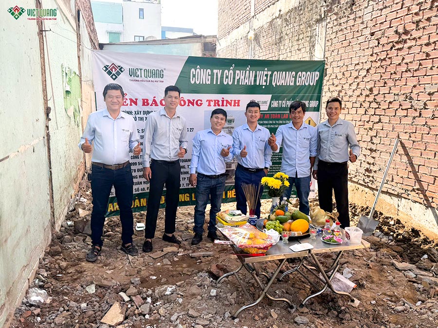 Triển khai cúng động thổ xong, đội ngũ nhân công Việt Quang Group triển khai giai đoạn tập kết vật tư, chuẩn bị mặt bằng được triển khai tuần tự, chuẩn chỉ đảm bảo thuận tiện và an toàn cho toàn bộ quá trình thi công xây dựng sau này.