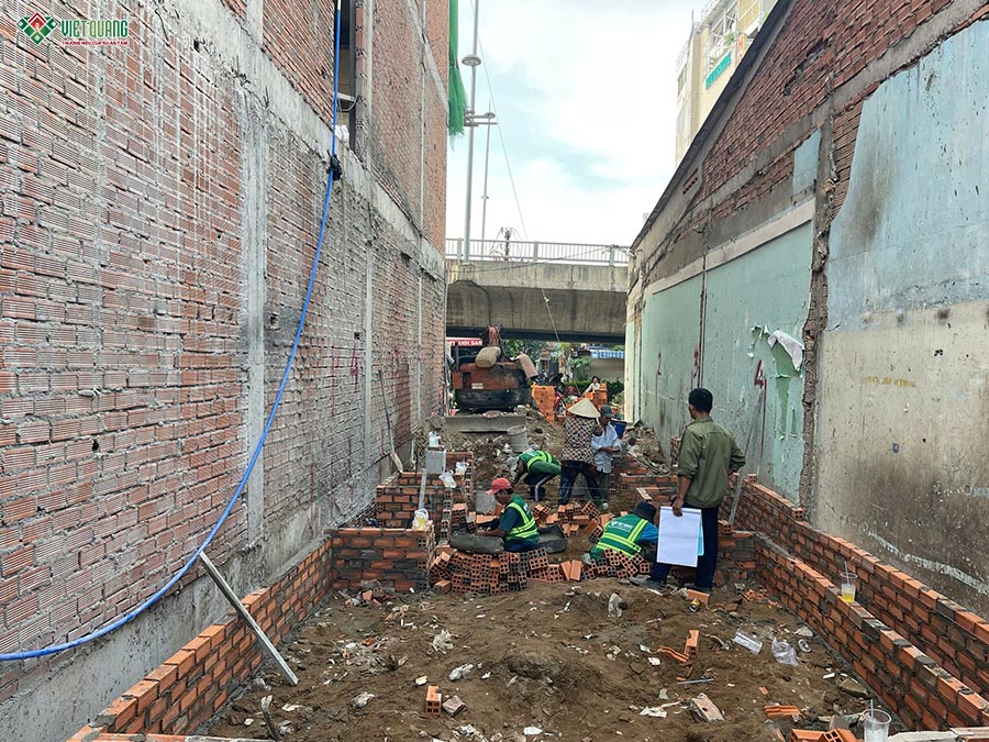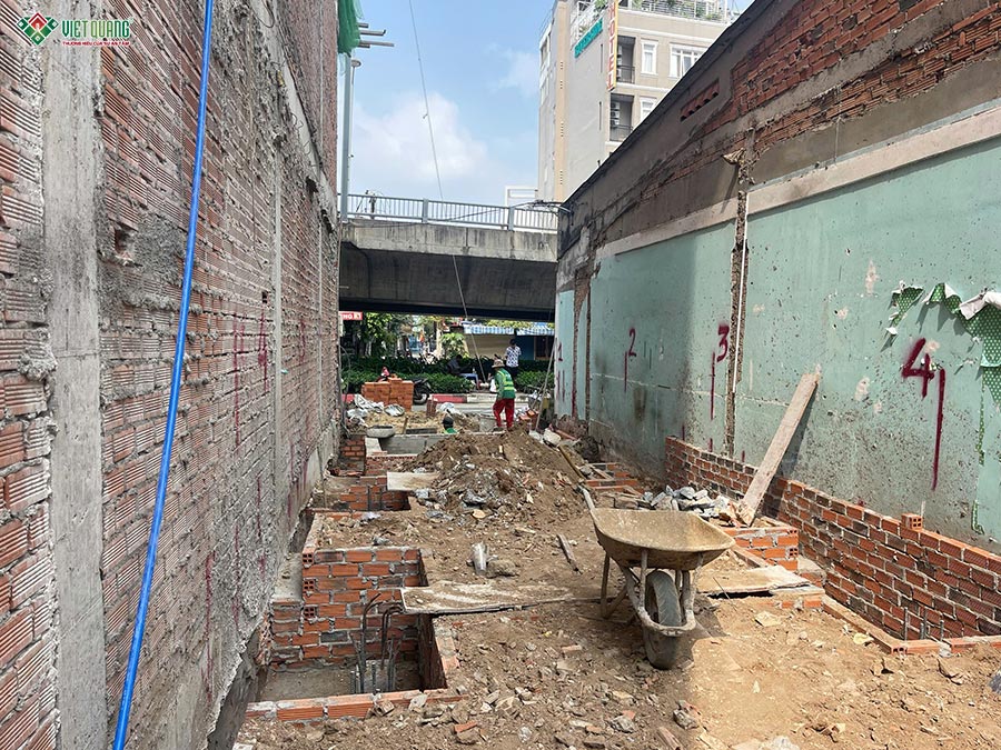 Quá trình thi công xây dựng nhà phố 6 tầng 5x18m của gia đình cô Xuân tại quận Bình Thạnh được Việt Quang Group triển khai theo quy trình bài bản, khoa học và kiểm soát chặt chẽ từng giai đoạn. Từ công tác chuẩn bị mặt bằng, thi công móng, phần thô cho đến hoàn thiện, mỗi hạng mục đều được thực hiện theo hồ sơ kỹ thuật đã thống nhất, đảm bảo an toàn kết cấu, đúng tiến độ, đạt chuẩn thẩm mỹ. Dưới đây là các giai đoạn thi công chi tiết của công trình, phản ánh rõ năng lực tổ chức, tay nghề thi công và tinh thần trách nhiệm của Việt Quang Group trong suốt hành trình đồng hành cùng gia chủ.