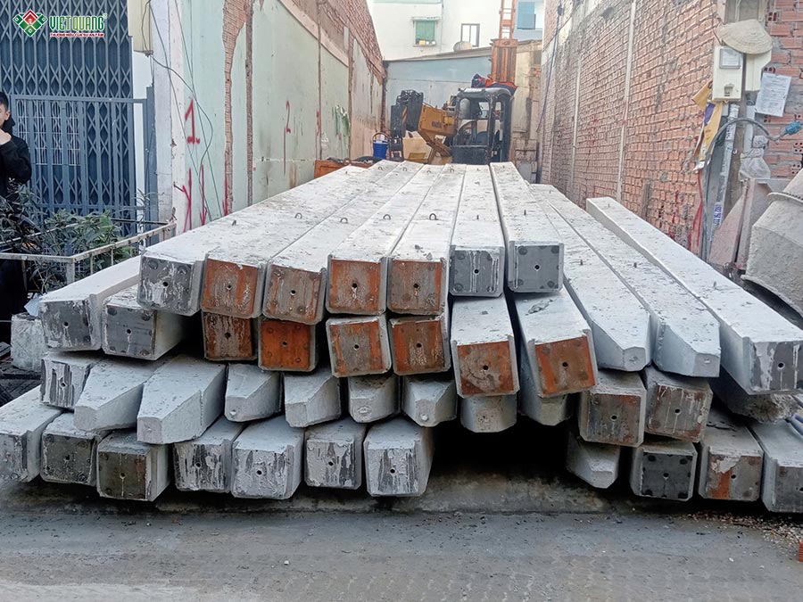 Hình ảnh tập kết cọc bê tông cốt thép chuẩn bị thi công ép cọc