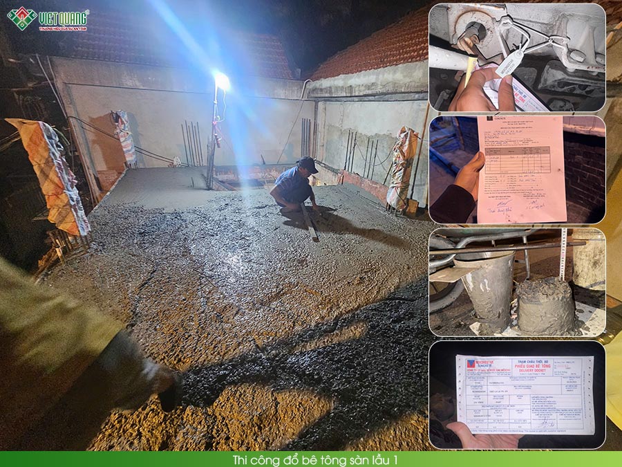 Hình ảnh thi công đổ bê tông sàn lầu 1