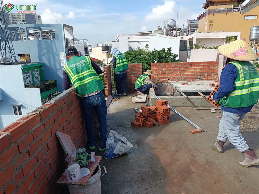 5. Thi công xây dựng phần thô lầu 2 nhà lô góc 3 tầng 5x14m