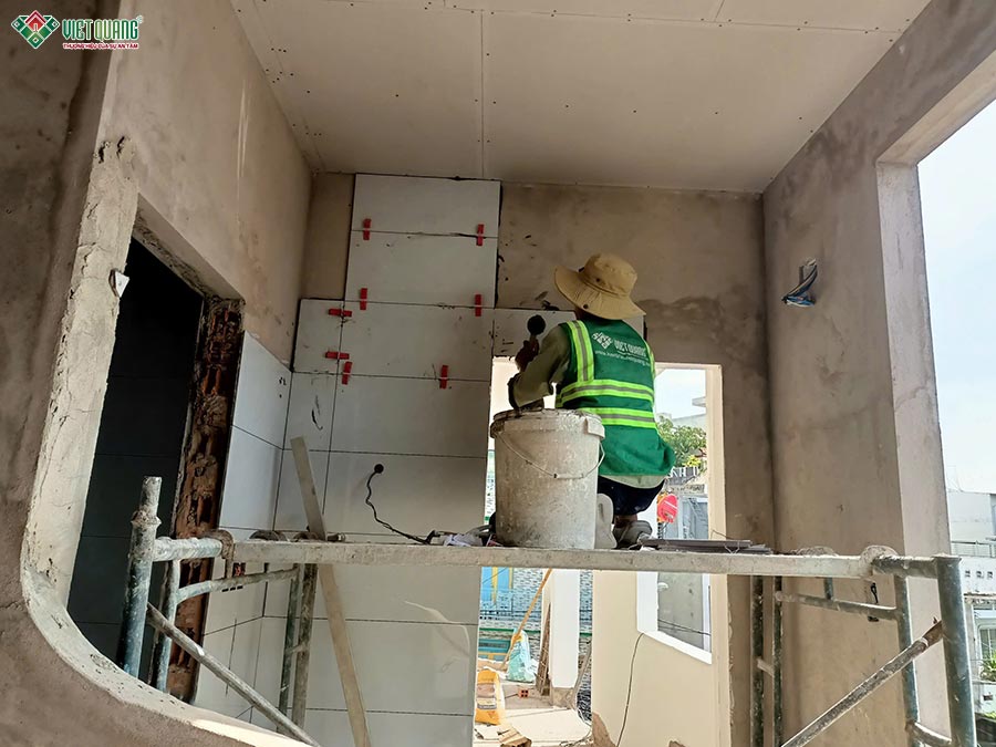 Sau khi hoàn tất phần thô và các hạng mục kỹ thuật nền tảng, công trình bước vào giai đoạn thi công hoàn thiện – giai đoạn quyết định trực tiếp đến diện mạo, công năng và trải nghiệm sinh hoạt của gia đình. Đối với nhà lô góc 3 tầng 5x14m, đội ngũ Việt Quang Group triển khai đồng bộ các hạng mục hoàn thiện như ốp lát gạch, sơn nước, lắp đặt cửa, lan can, thiết bị điện nước và thiết bị vệ sinh, đảm bảo thi công đúng bản vẽ thiết kế và yêu cầu thẩm mỹ của gia chủ.