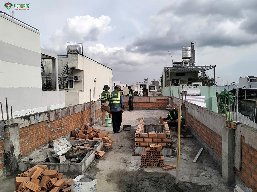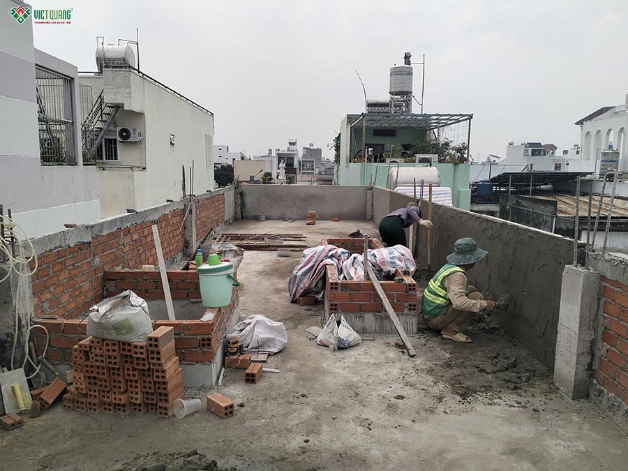 Hình ảnh thi công xây tường bao sân thượng
