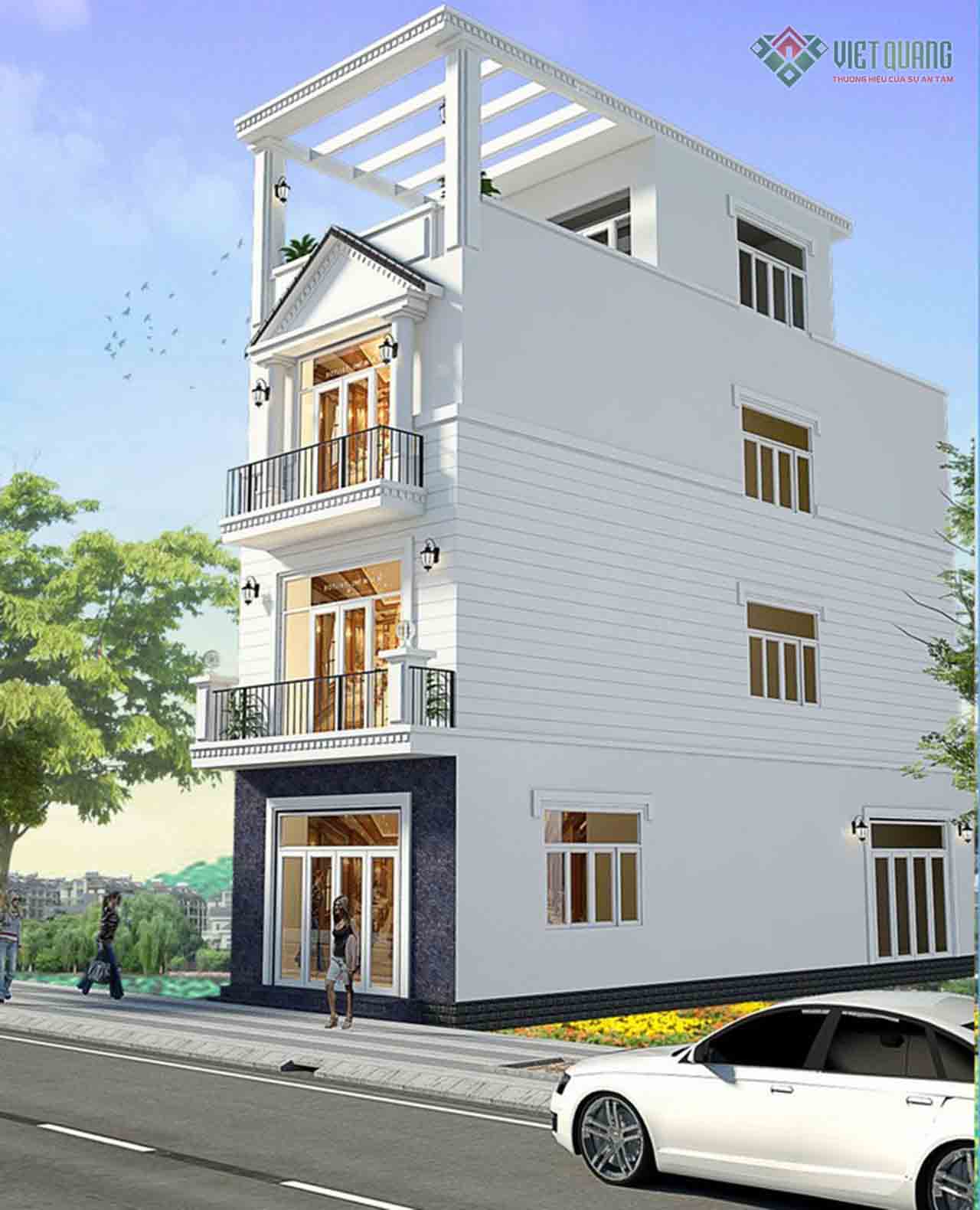 Hôm nay Việt Quang group giới thiệu đến quý khách mẫu thiết kế nhà phố tân cổ điển 4 tầng – 05. Đây là mẫu thiết kế nhà phố 4 tầng có sân thượng và tum thang thoáng mát diện tích 4x15m.