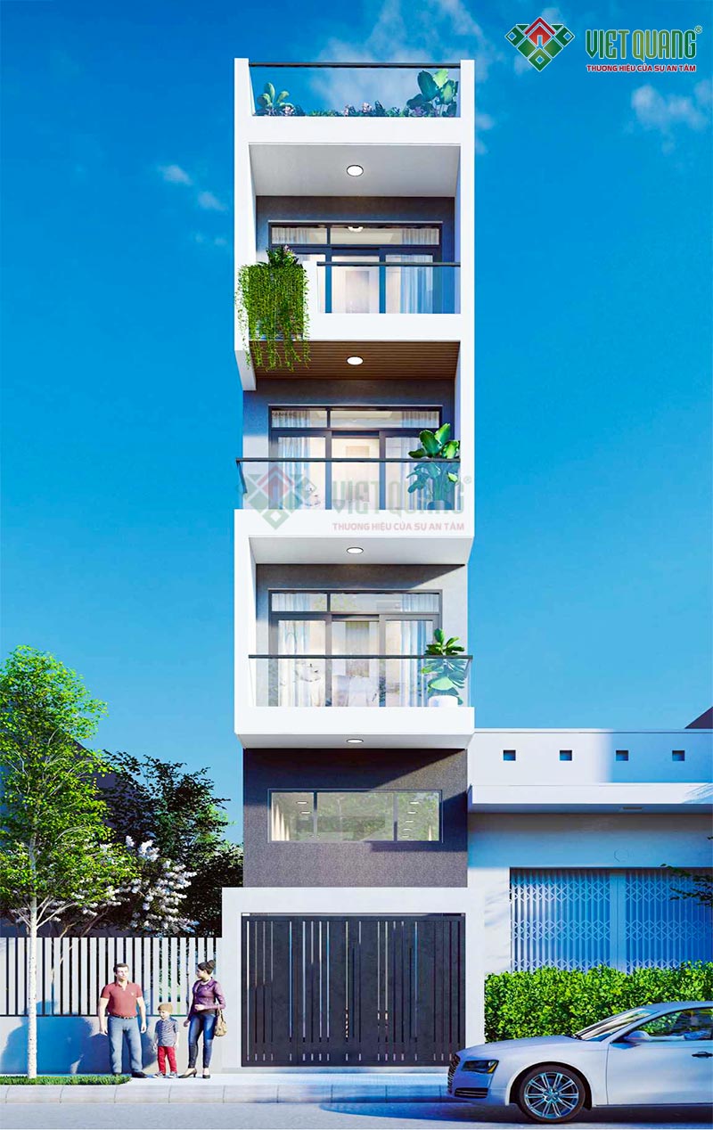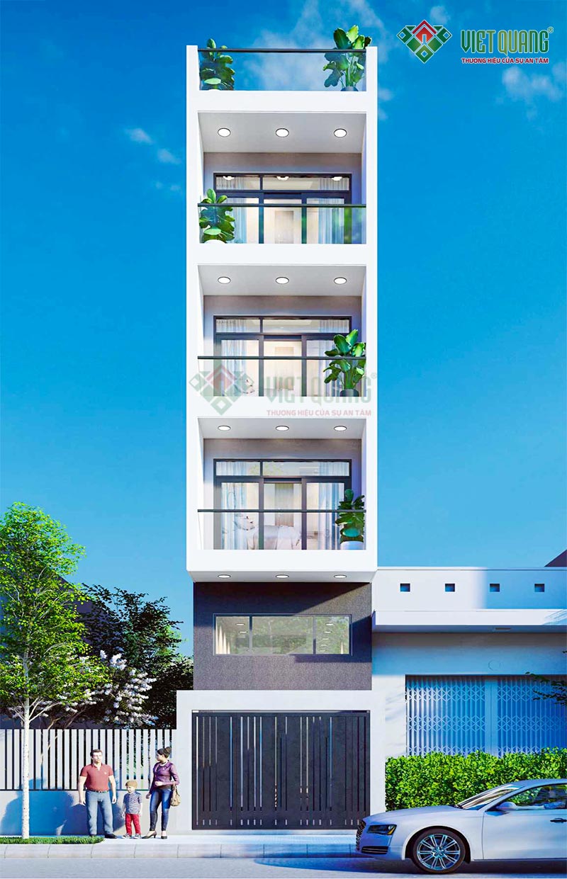 Mẫu nhà phố 5 tầng diện tích 3.5m x 17m thuộc sở hữu của chủ đầu tư là gia đình chị Ngọc Anh tại quận Tân Phú do kiến trúc sư Việt Quang thiết kế và trực tiếp thi công.