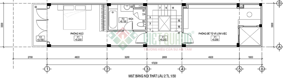 d, Mặt bằng bố trí công năng sử dụng lầu 2 và lầu 3