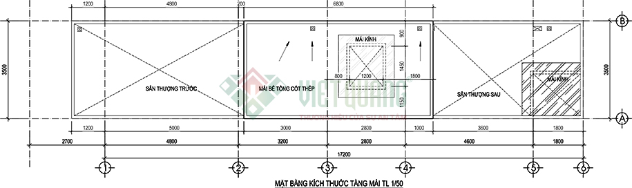 e, Bản vẽ 2d mặt bằng công năng sử dụng sân thượng và mái nhà