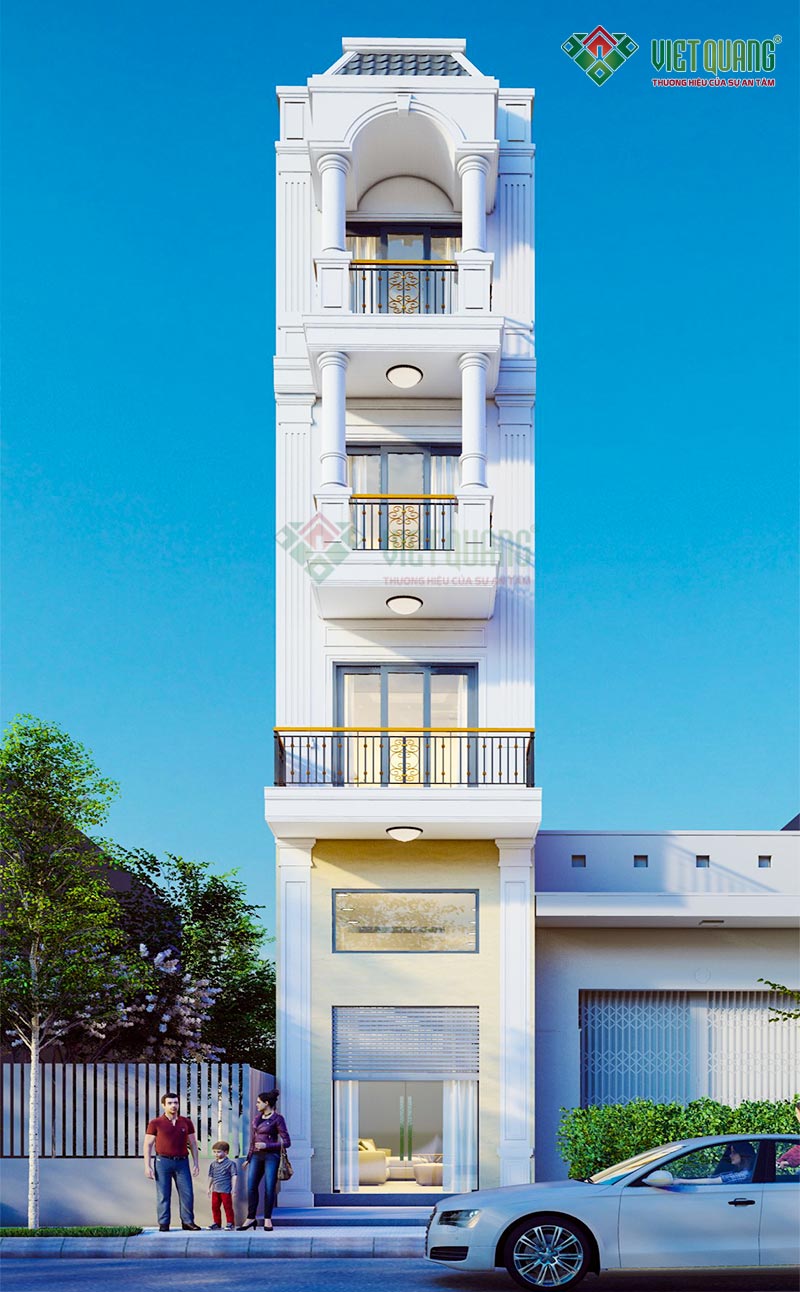 Quý khách đang cần tìm mẫu nhà phố 5 tầng hoặc mẫu nhà phố 4 tầng có thêm tầng lửng với kiến trúc tân cổ điển hoặc cổ điển để tham khảo và tự thiết kế cho riêng gia đinh mình một ngôi nhà đẹp mơ ước. Hãy xem hết bài viết này, vì bài viết này Việt Quang Group sẽ giới thiệu đến quý khách mẫu thiết kế nhà phố 1 trệt 1 lửng 3 lầu tum sân thượng 3.5x17m.