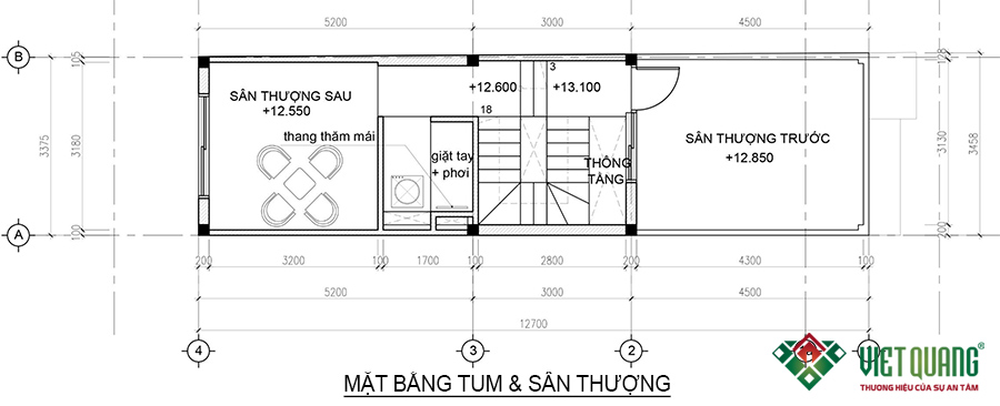 d. Mặt bằng thiết kế tum và sân thượng nhà phố 4 tầng 1 lửng 3,4m x 15,5m
