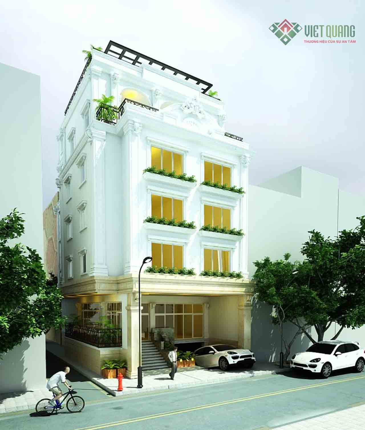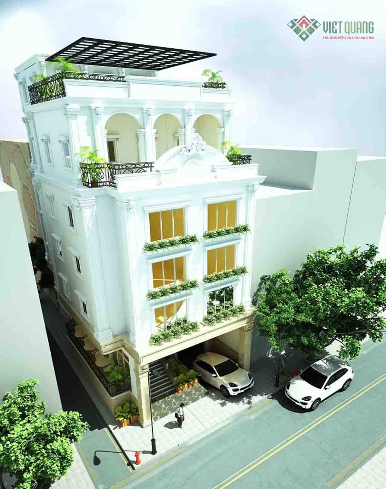 Công ty xây dựng Việt Quang xin giới thiệu đến quý khách mẫu thiết kế nhà phố tân cổ điển 5 tầng – 03, diện tích 8x16m để tham khảo.