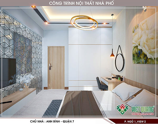 Việt Quang Group giới thiệu đến quý khách mẫu thiết kế nội thất phòng ngủ đẹp 42 để quý khách tham khảo. Đây là mẫu thiết kế nội thất do chính kiến trúc sư của Việt Quang thiết kế cải tạo công năng nhà ở cho gia đình anh Bình tại quận 7.