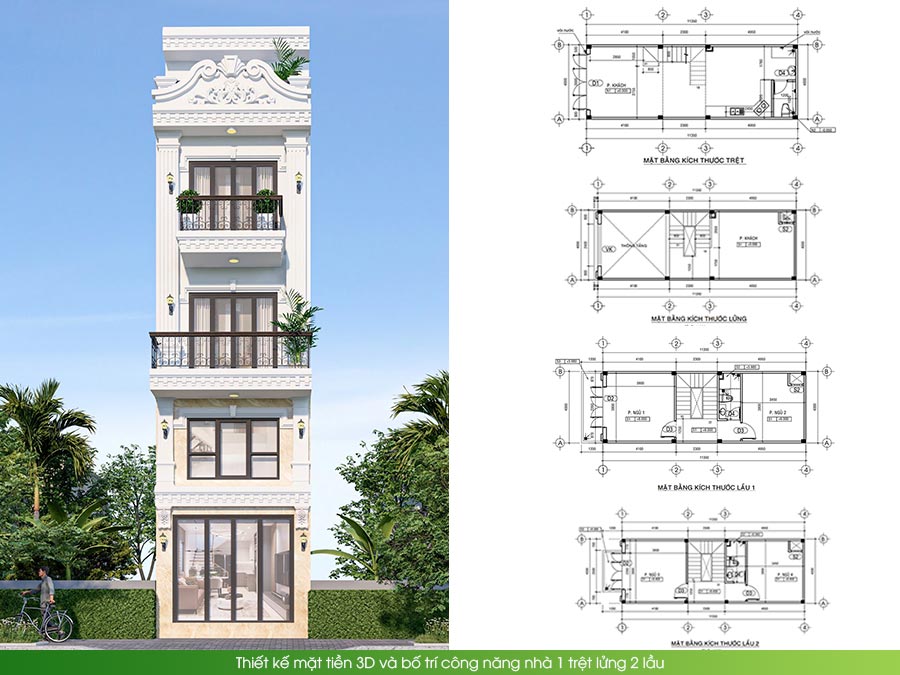 - Quy mô: 1 trệt 2 lầu sân thượng