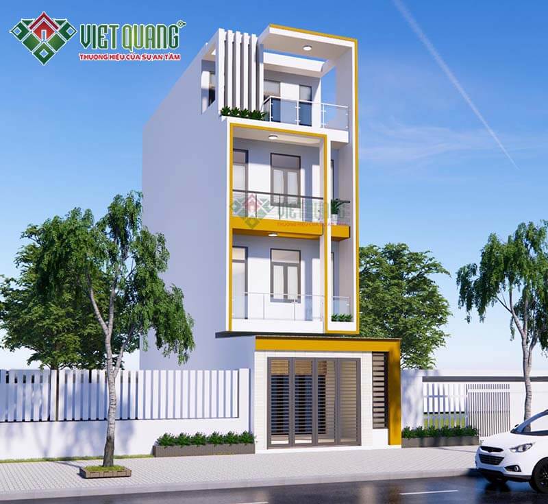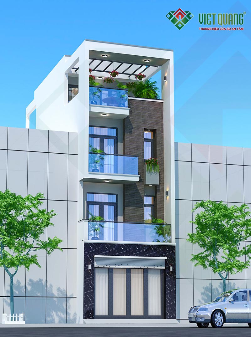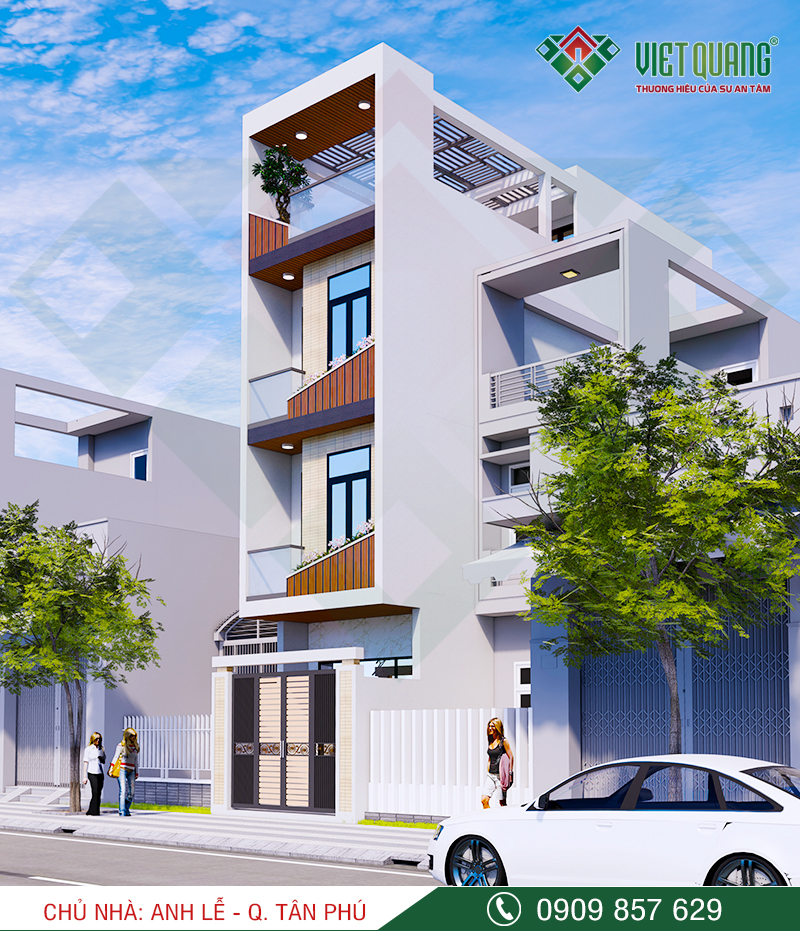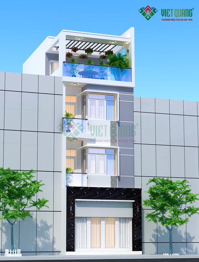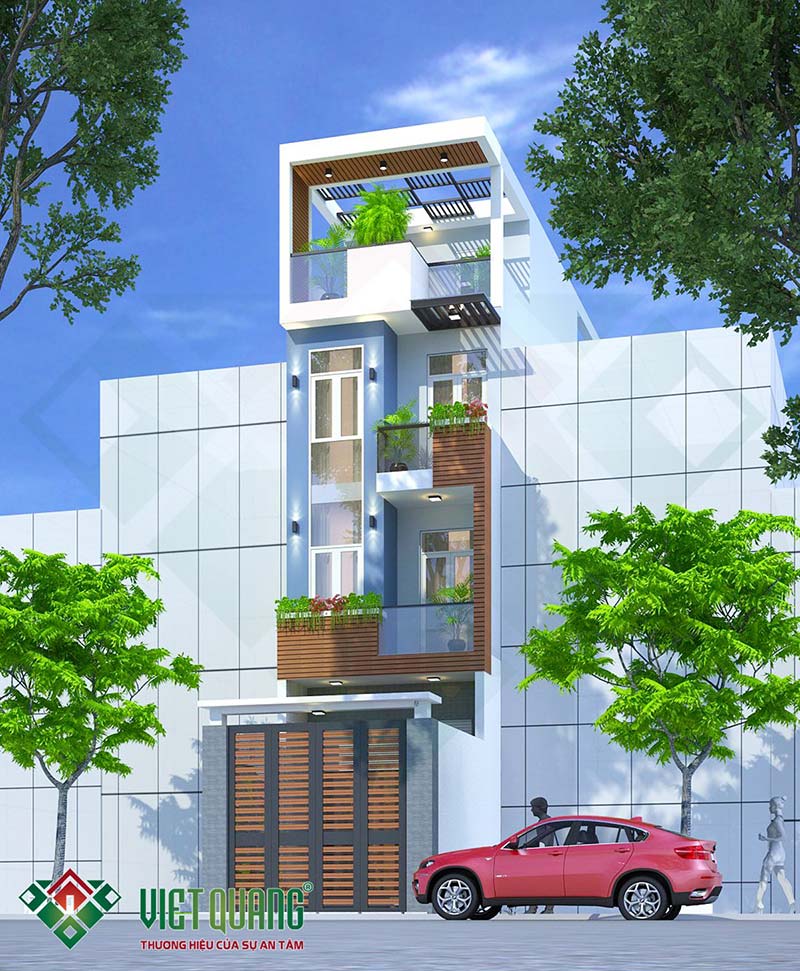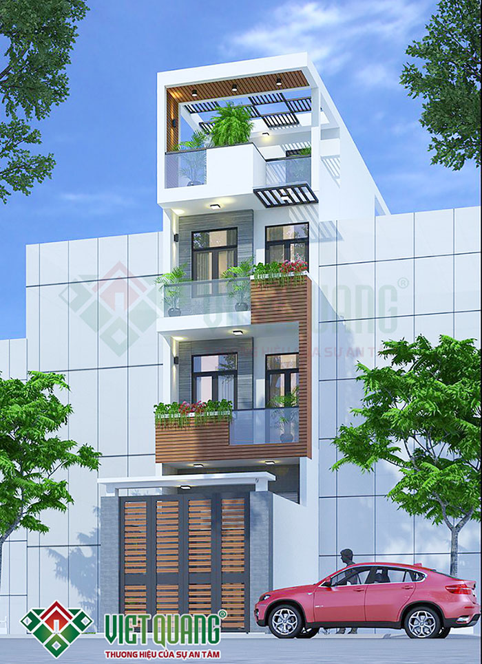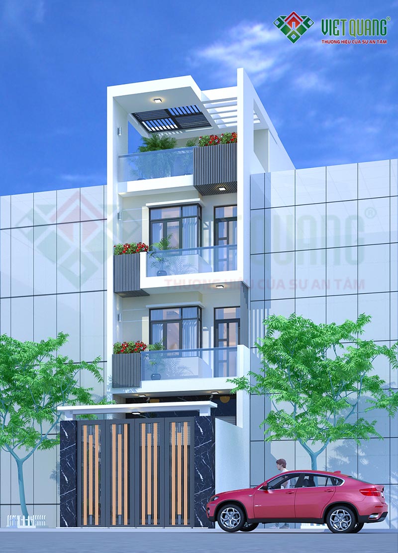 Đây là mẫu thiết kế ngôi nhà phố 4 tầng diện tích 5mx20m của gia đình anh Luân tại Tân Bình. Với diện tích 5x20m, tại tầng 1 có thể thiết kế gara để xe hơi trong nhà. Việt Quang đã khởi công xây dựng công trình này vào ngày 03/03/2021.