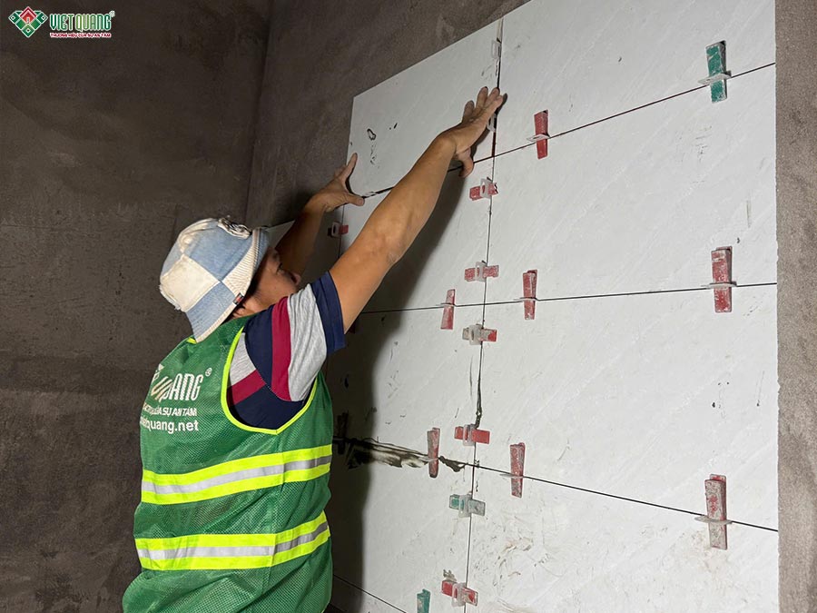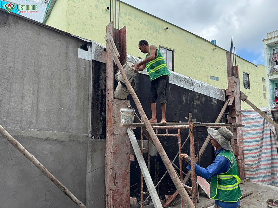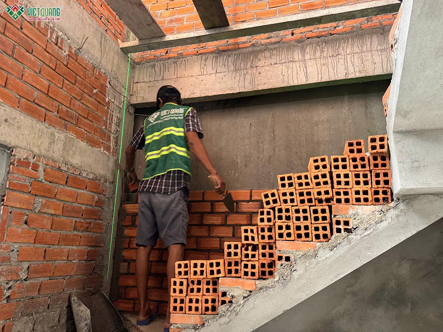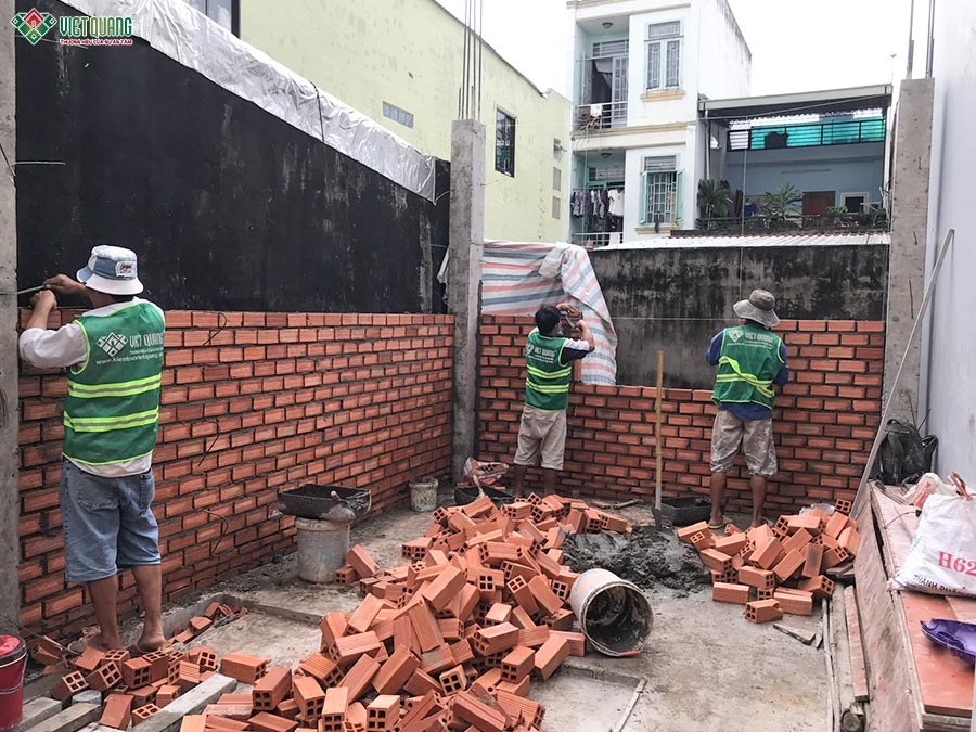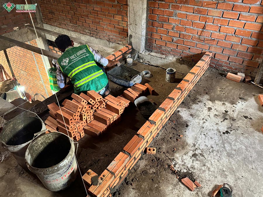 Trong giai đoạn này, đội giám sát kỹ thuật thường xuyên kiểm tra cao độ, độ thẳng đứng và kích thước theo bản vẽ. Chất lượng vật liệu được quản lý nghiêm ngặt, không sử dụng hàng kém chất lượng hay sai quy cách.